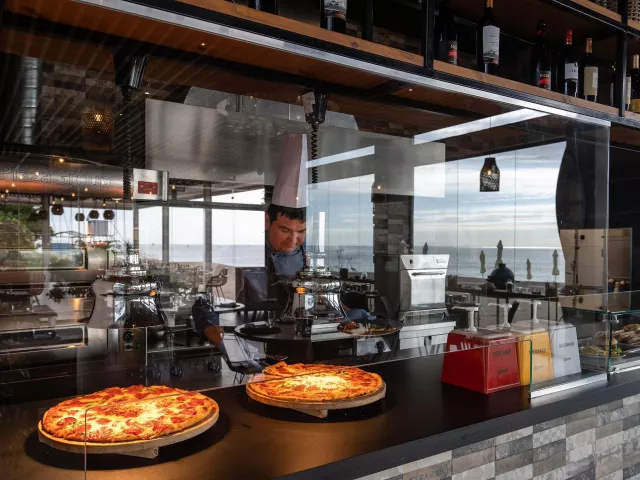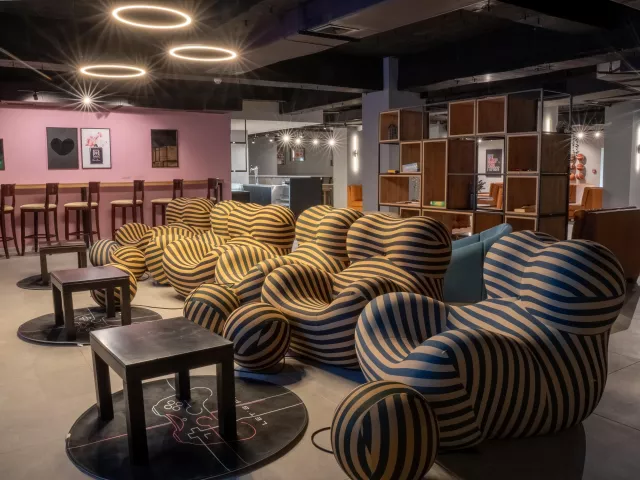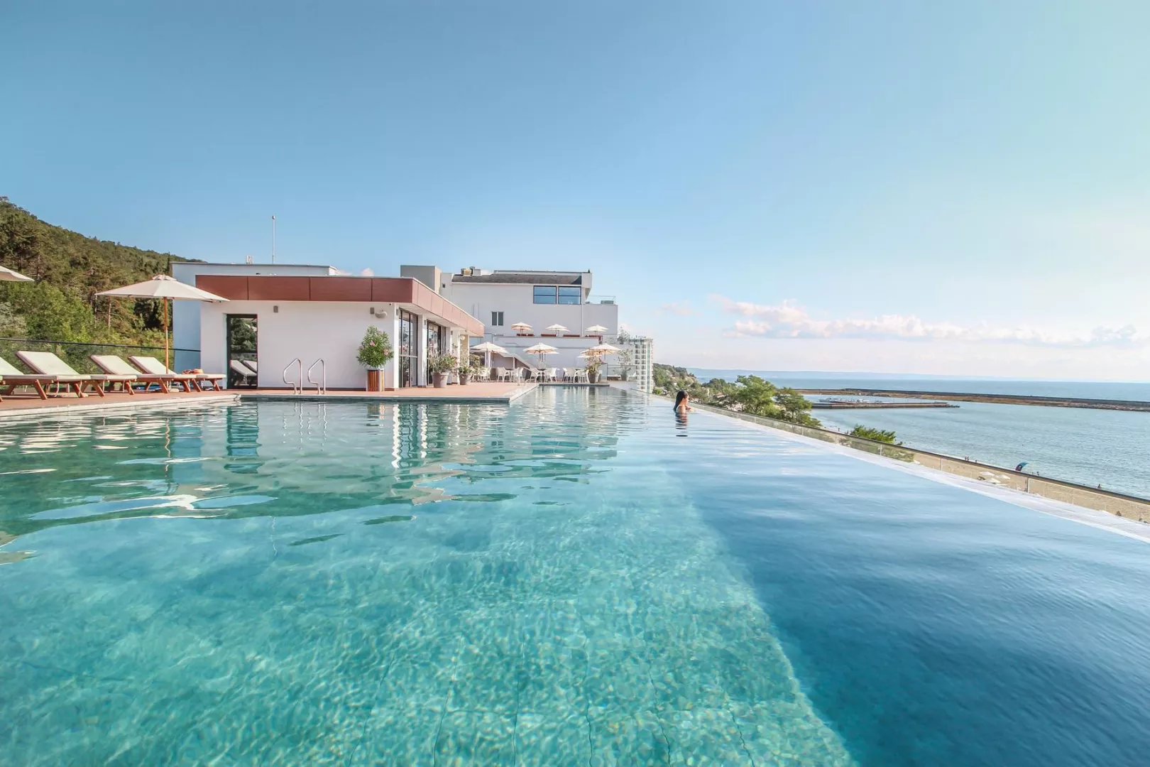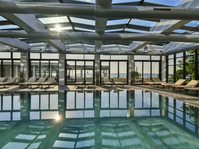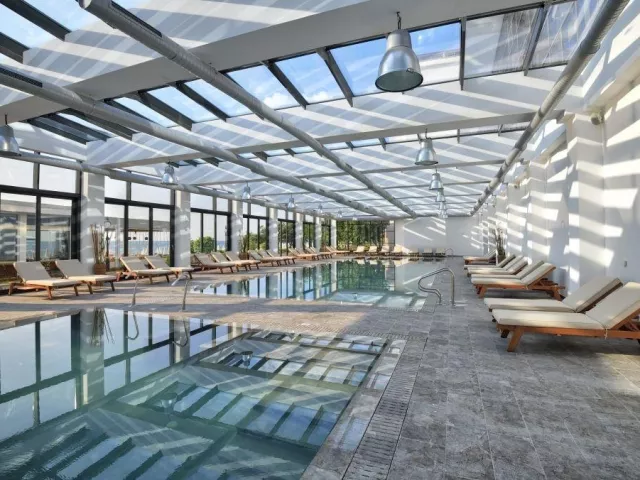 vstupná hala s recepciou reštaurácia s terasou lobby bar snack reštaurácia a bar na pláži sky bar bar pri bazéne 2 a la carte reštaurácia trezor zadarmo zmenáreň konferenčná miestnosť knižnica miniklub vnútorný vyhrievaný bazén detský bazén so šmykľavkami pre najmenších (pri pláži) nekonečný bazén s panoramatickou slnečnou terasou na streche (lehátka, slnečníky a osušky zdarma) MediSPA centrum (16+)