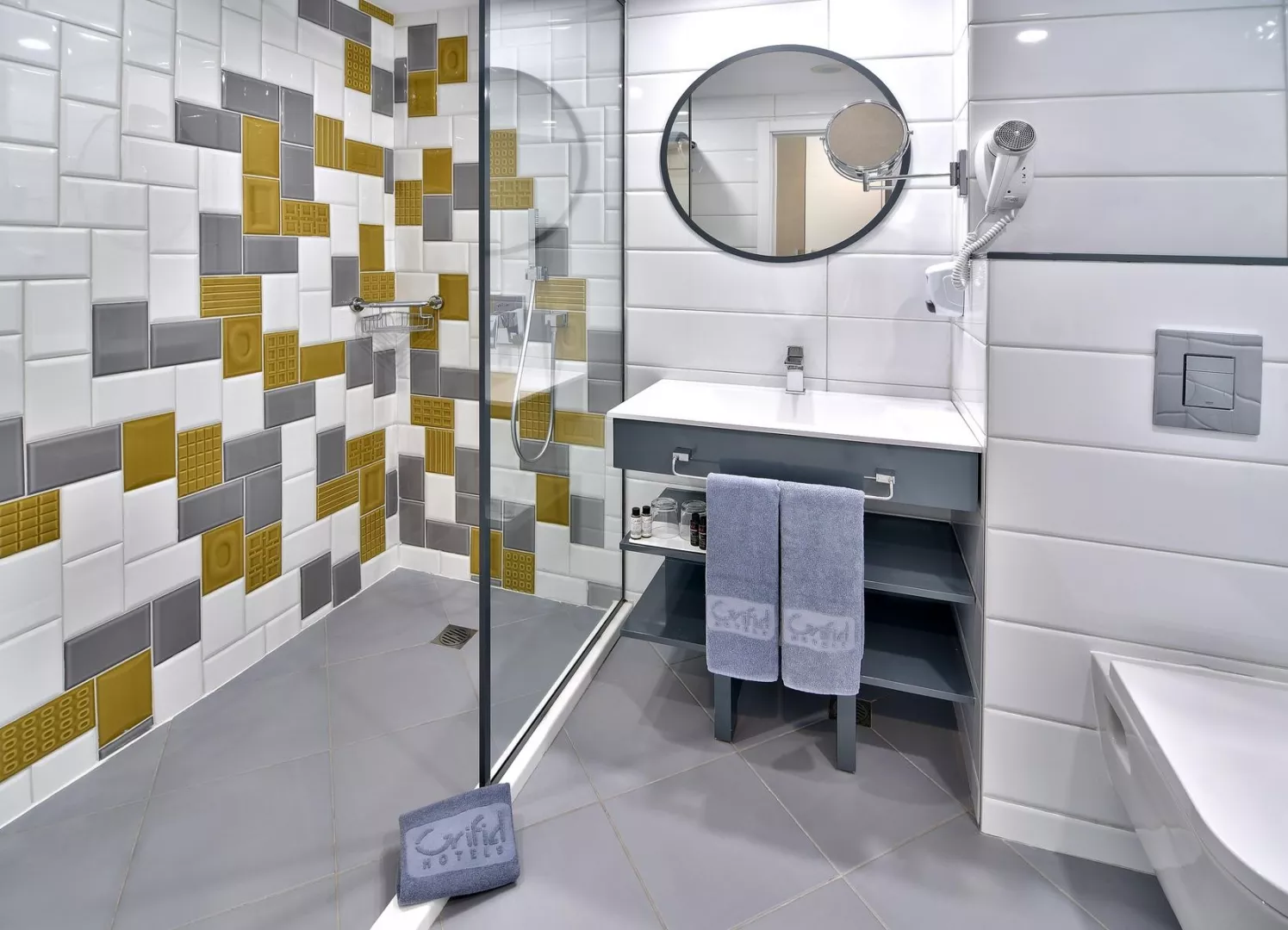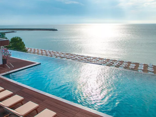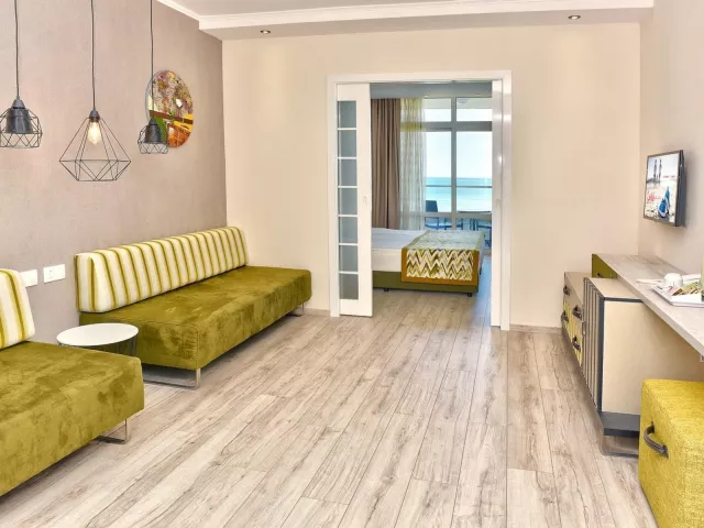 Dvojlôžková izba centrálna klimatizácia káblová TV Wi-Fi (zdarma) minibar (minerálna voda, nealkoholické nápoje a pivo zadarmo, doplňovaný denne) set na prípravu čaju a kávy trezor (zadarmo) telefón kúpeľňa/WC (sušič vlasov) balkón detská postieľka zadarmo (na vyžiadanie) Ostatné typy izieb (pokiaľ nie je uvedené inak, majú izby vyššie uvedené vybavenie) Dvojlôžková izba, výhľad na more: výhľad na more Rodinná izba: spálňa a obývacia izba oddelené posuvnými dverami Rodinná izba, výhľad na more: spálňa a obývacia izba oddelené posuvnými dverami, výhľad na more Dvojlôžková izba, Concept, výhľad mora: GRIFID Concept, výhľad na more Jednolôžková izba, Concept, výhľad mora: GRIFID Concept, výhľad na more Rodinná izba, Concept, výhľad mora: GRIFID Concept, spálňa a obývacia izba oddelené posuvnými dverami, výhľad na more GRIFID Concept - iba pre izby Concept výber najlepších izieb vo vyšších poschodiach s výhľadom na more značková kúpeľová kozmetika Rituals 40” smart TV župan a papuče kávovar na kapsule early check-in alebo late check-out zadarmo (na vyžiadanie, podľa dostupnosti) uvítací GRIFID darček športový nápoj v minibare zdravé kontinetálne raňajky v SKY bare vyhradená časť pláže a pri bazéne - plážové stany, vírivka možnosť večere va la Carte reštaurácii Beach Club (nutná rezervácia vopred)