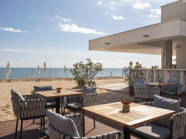 dlhá široká piesočnatá pláž 1 slnečník a 2 lehátka / izba zdarma (len pre plne platiace osoby) plážový bar