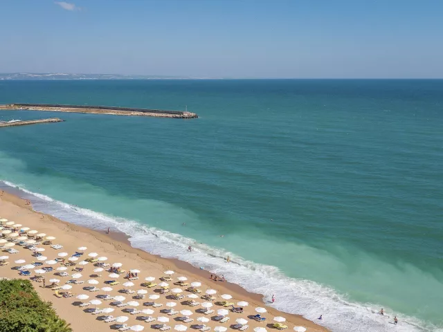 Piesočnatá pláž je vzdialená približne 800 m od hotela. Každý izba má nárok na 1 slnečník a 2 ležadlá zdarma, podľa dostupnosti.