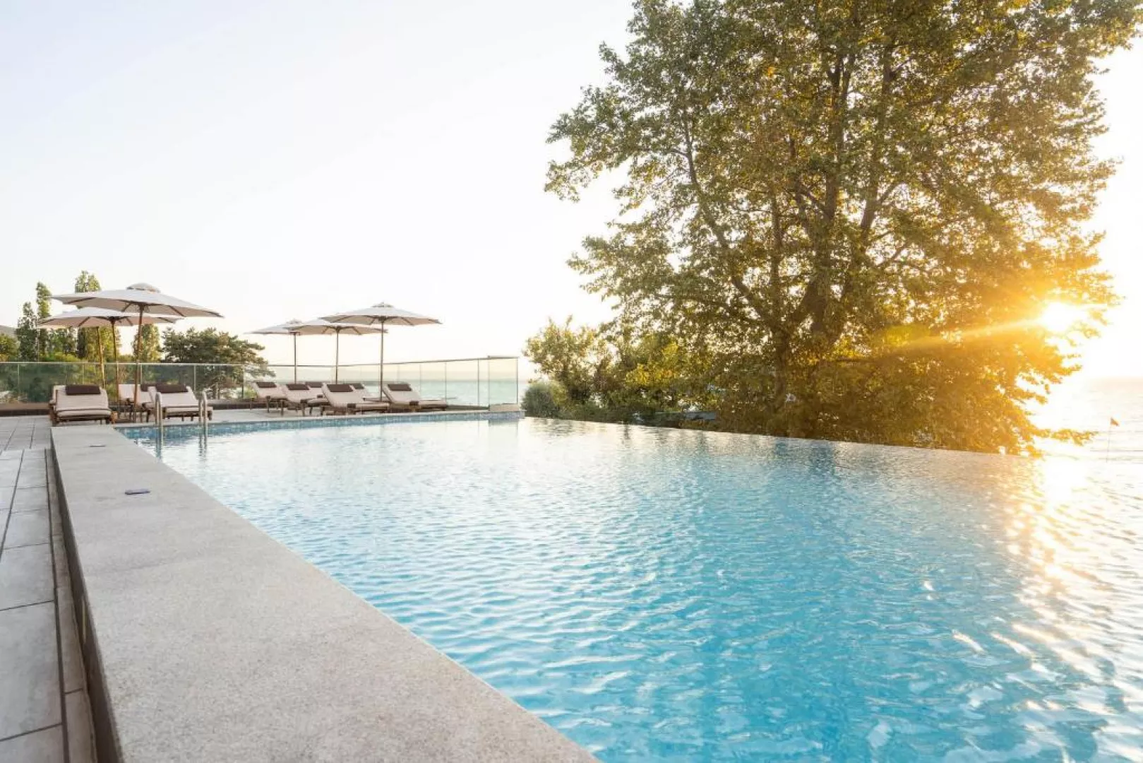 Hotel disponuje vstupnou halou, recepciou, zmenárňou, hlavnou reštauráciou s vonkajšou terasou, barom pri bazéne, SKY barom, lobby barom a lounge barom na pláži. WiFi pripojenie je zdarma na recepcii aj v izbách. Na vonkajšej strane sa nachádza panoramatický infinity bazén, prírodný bazén s okruhliakovým dnom a umelou plážou, ležadlá, slnečníky a osušky pri bazéne sú taktiež zadarmo. Za príplatok sú k dispozícii parkovanie a obchodík.
