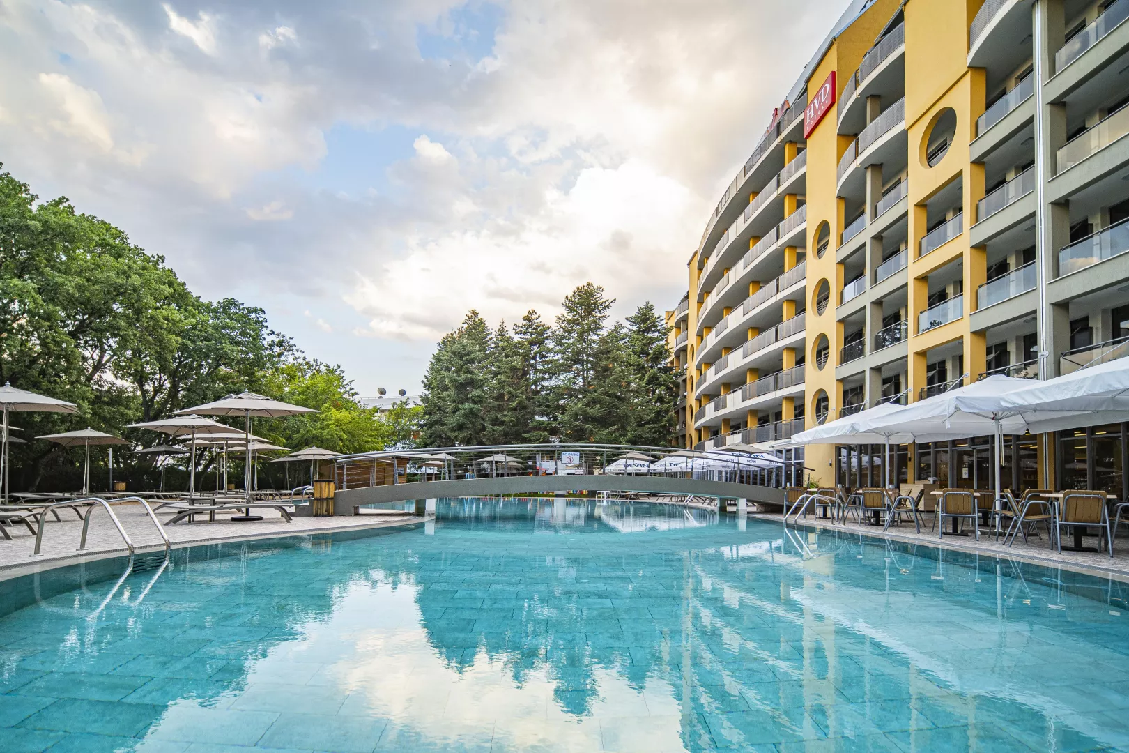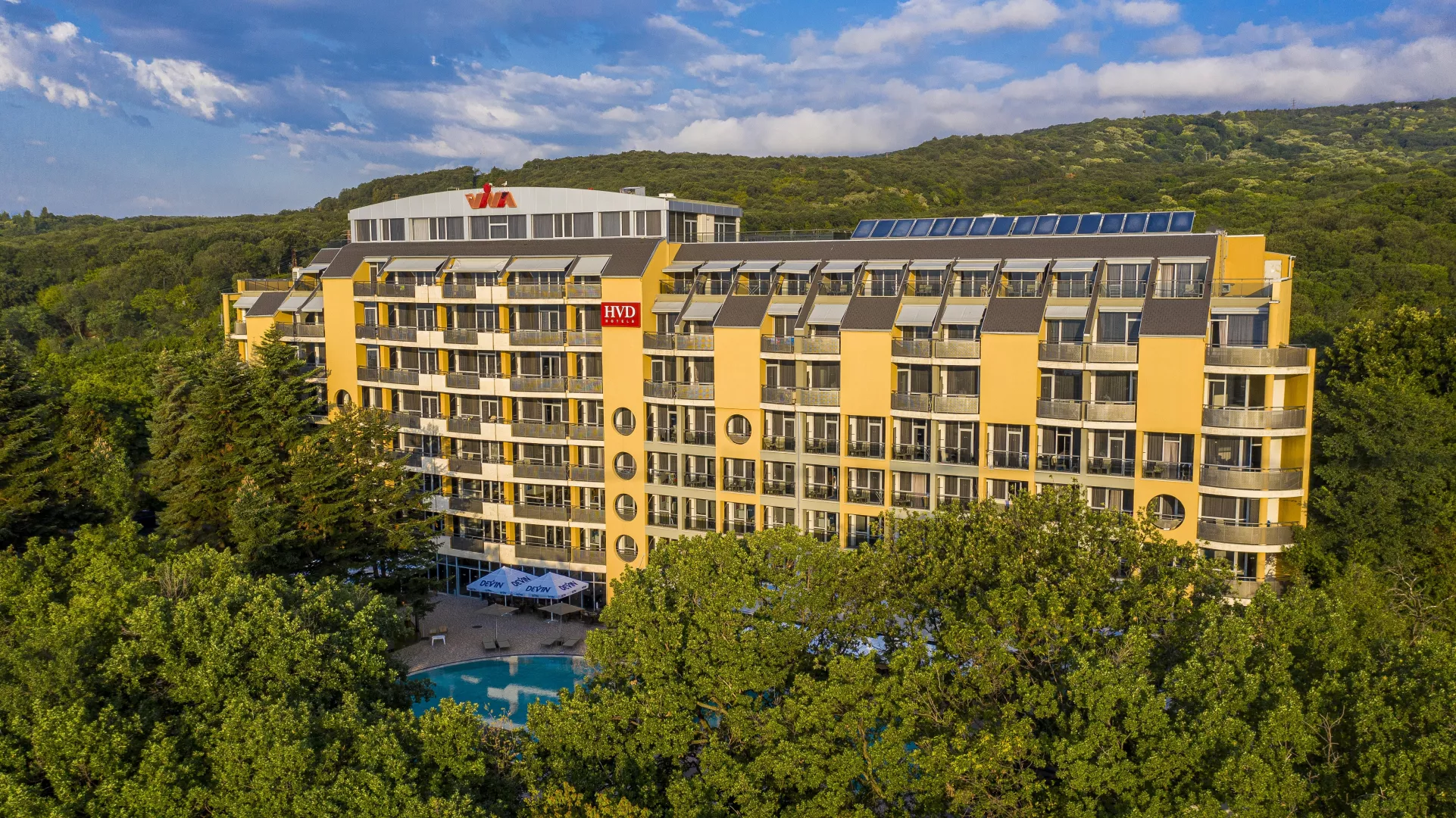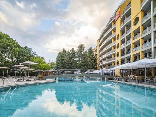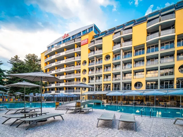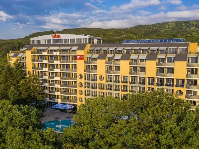 Hotelový rezort HVD Viva Club sa nachádza na pokojnom mieste, približne 800 m od centra známeho letoviska Zlaté piesky. Krásna piesočnatá pláž je taktiež vzdialená 800 m, pričom k nej vedie príjemná prechádzka. Hostia majú možnosť využiť hotelový shuttle bus, ktorý ich zadarmo zavezie na súkromnú pláž. Medzinárodné letisko Varna sa nachádza cca 25 km od hotela.