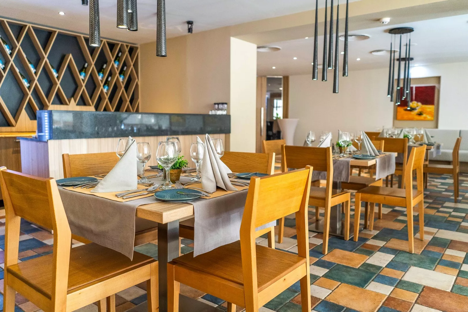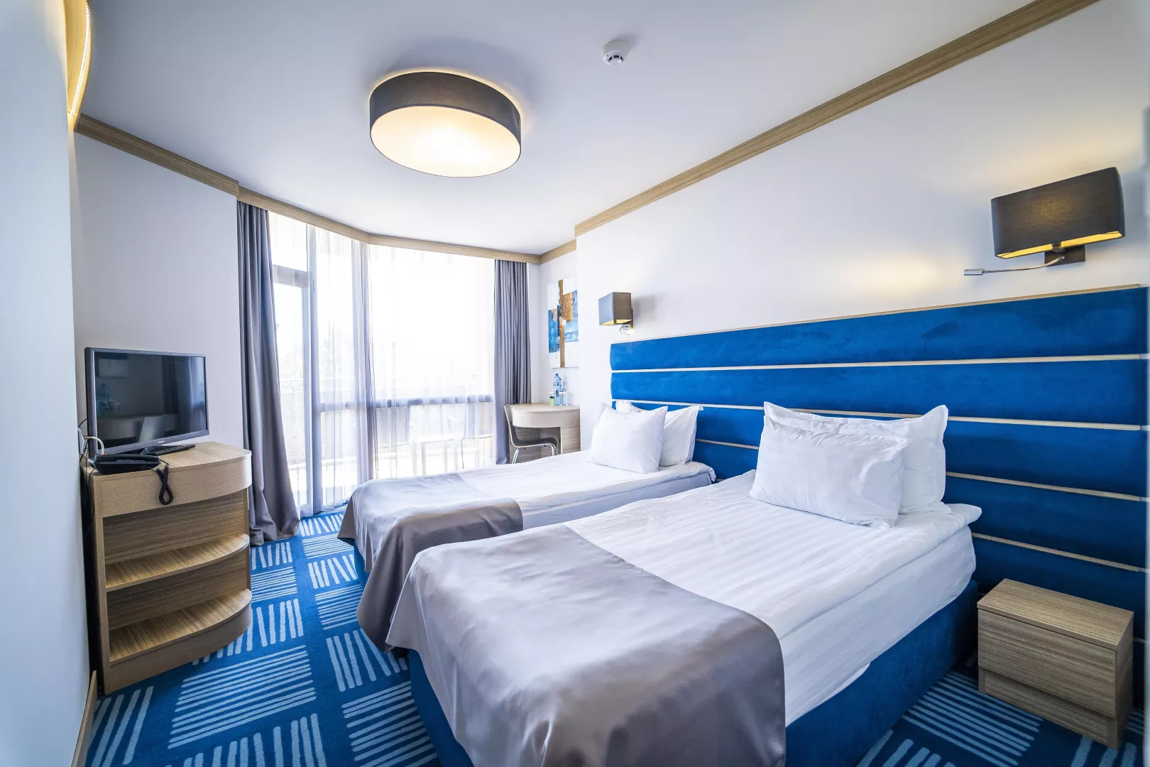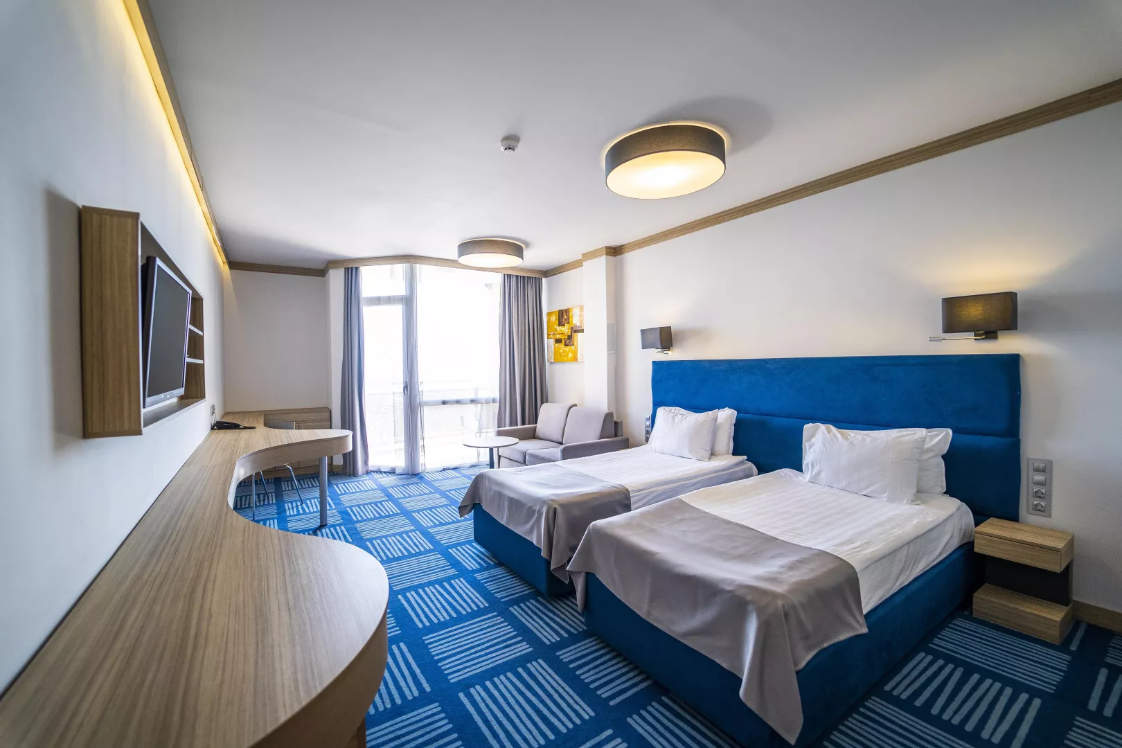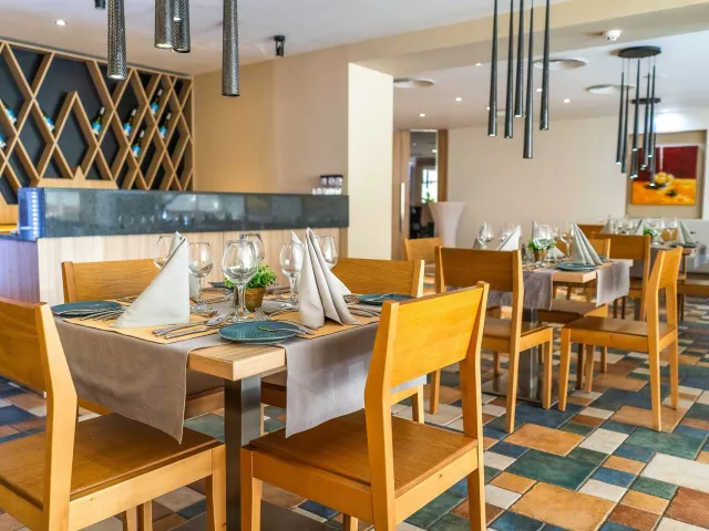 Dvojlôžkové izby sú klimatizované a vybavené TV/SAT, telefónom, minibarom s denným doplňovaním, kávovarom na kapsule a kúpeľňou/WC so sušičom vlasov. K dispozícii sú aj priestrannejšie Superior izby, rodinné izby pre 4 osoby a apartmány s dvoma priechodnými izbami.