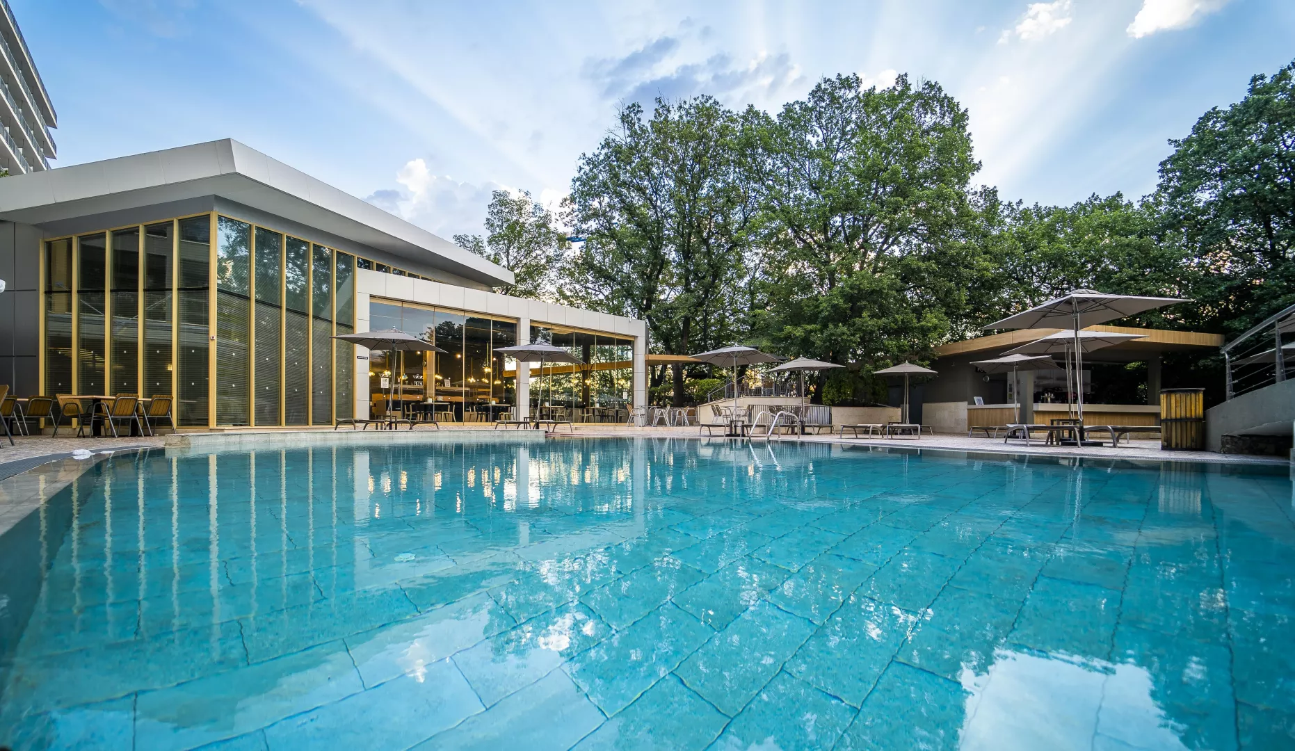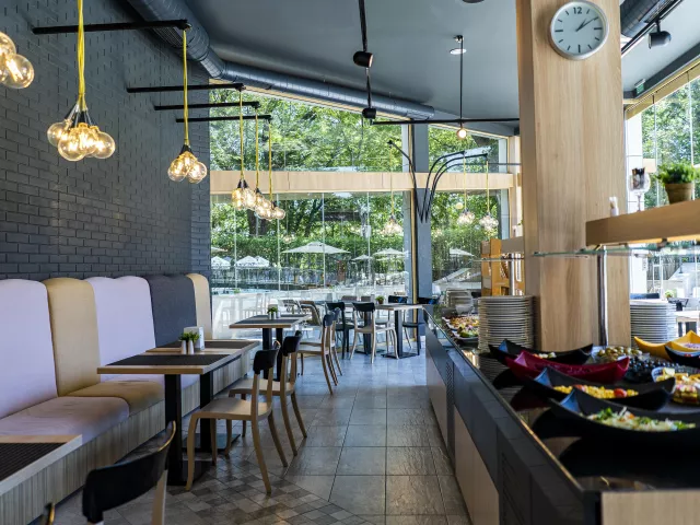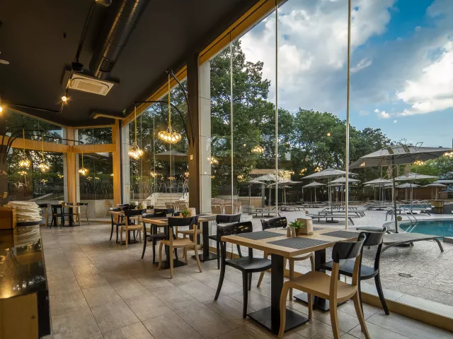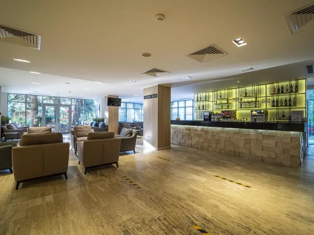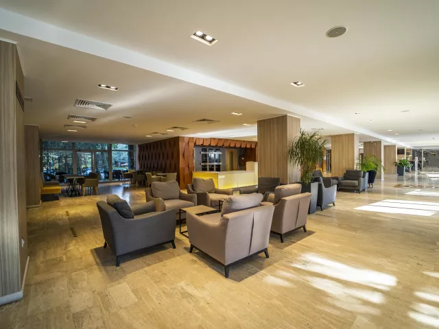 Rezort disponuje 260 izbami na 8 poschodiach, s dvoma výťahmi a vstupnou halou s recepciou. Služby zahŕňajú hlavnú reštauráciu, dve reštaurácie s obsluhou, lobby bar, bar pri bazéne a zmenáreň. K dispozícii je vonkajší bazén s terasou, ležadlami a slnečníkmi zdarma, detský bazén a detské ihrisko. Wi-Fi je bezplatné v lobby a na izbách.