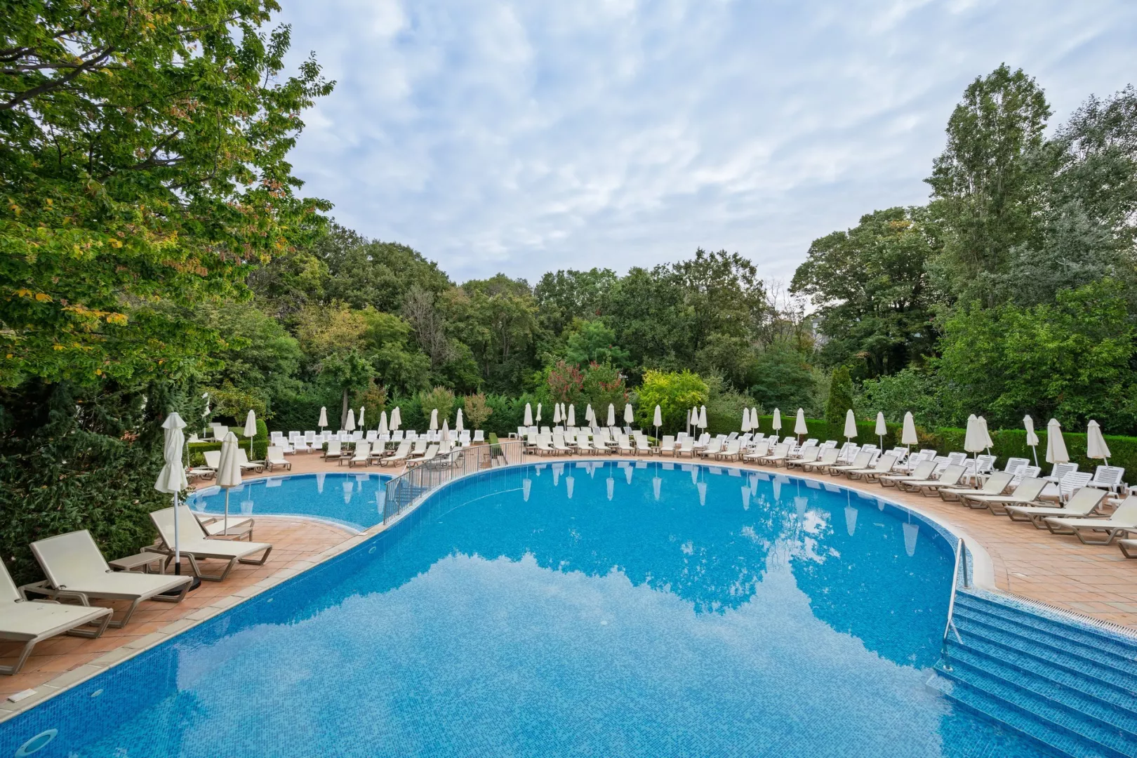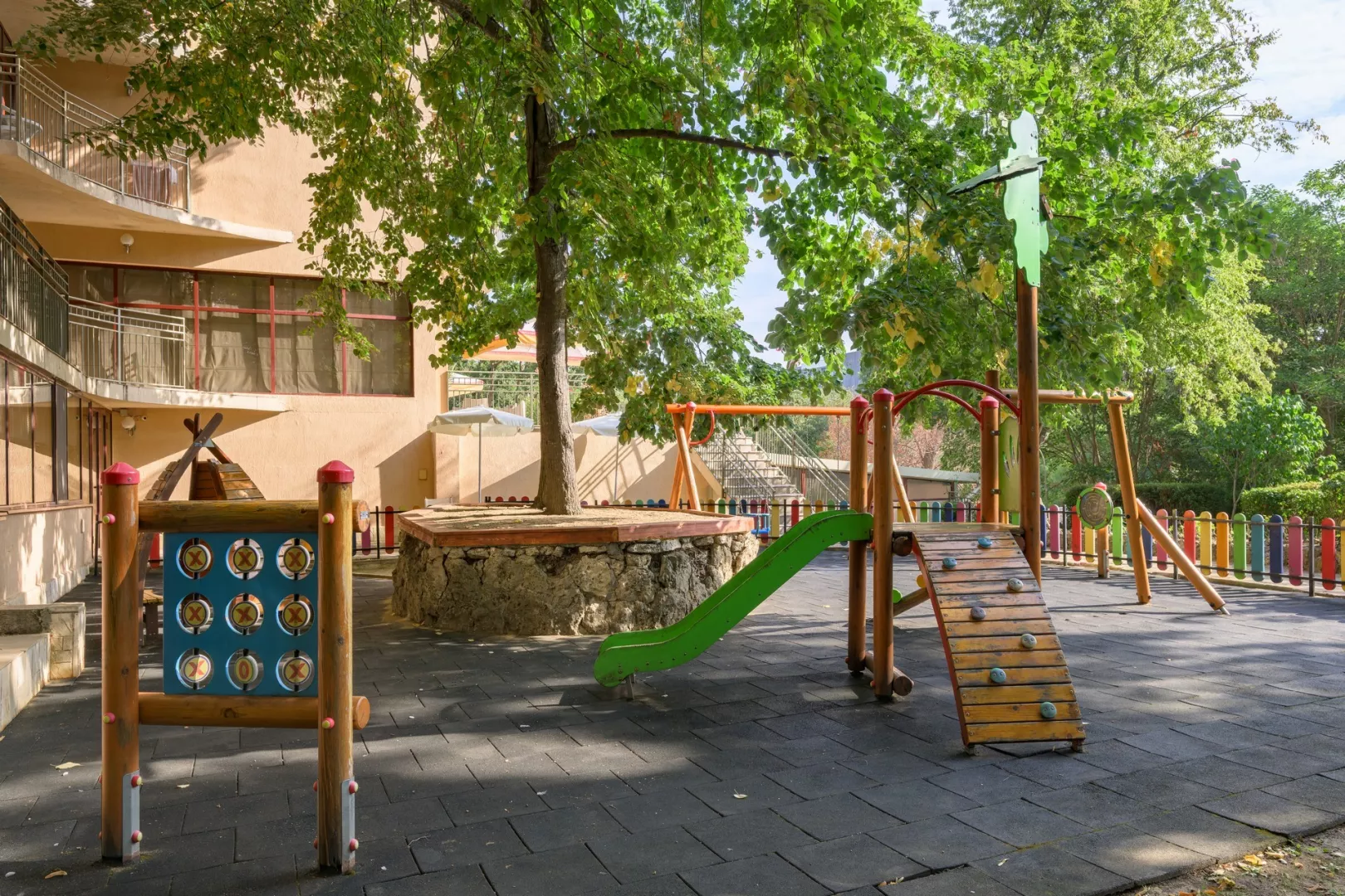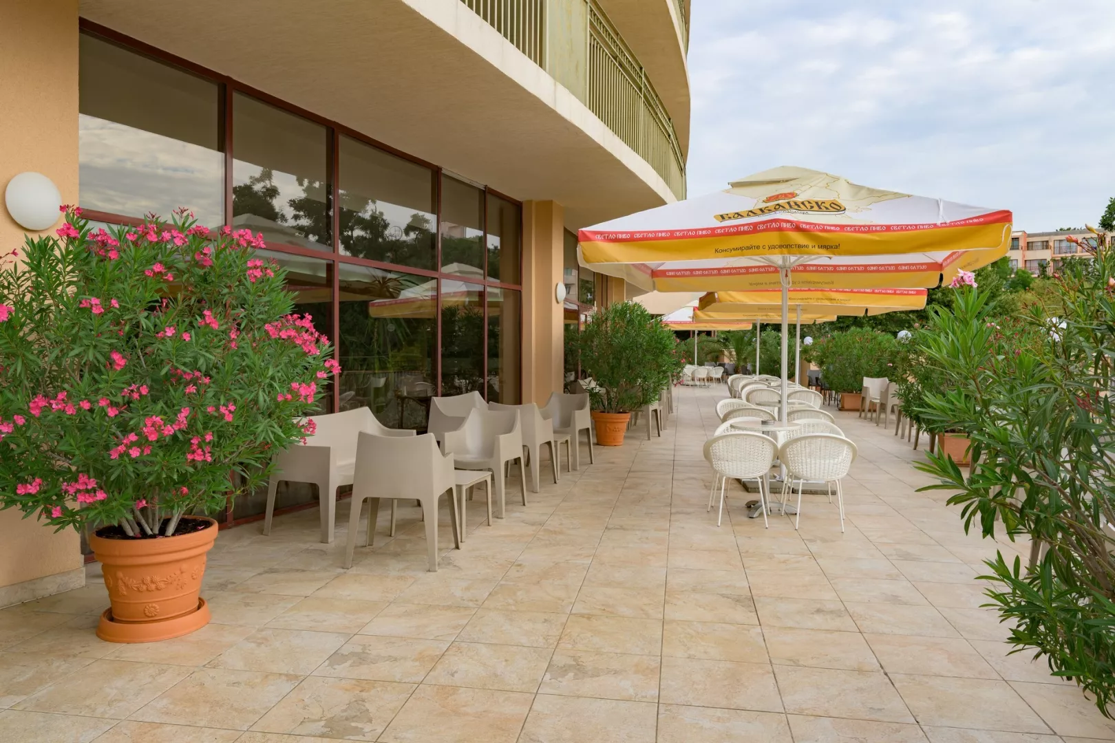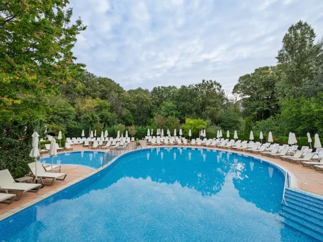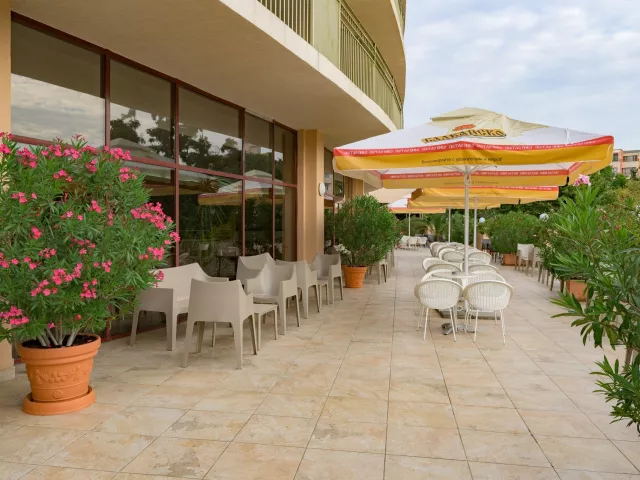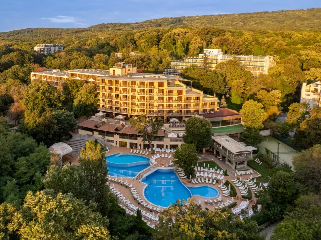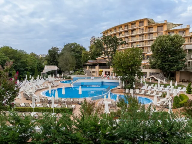 Moderne vybavený hotelový komplex sa nachádza v záhrade, v juhozápadnej časti strediska Zlaté piesky, vo vzdialenosti asi 400 metrov od rušného centra a cca 30 kilometrov od letiska vo Varne. Hotel ponúka ideálne prostredie na strávenie odpočinkovej dovolenky s relaxáciou v prekrásnej prírode a zeleni. Celá oblasť je obklopená národným parkom s hustými lesmi. Okrem klientov, vyhľadávajúcich pokojnú dovolenku, si tu na svoje určite prídu aj milovníci spoločenského života. Široká piesočnatá pláž s vyhlásenou promenádou je od hotela vzdialená 450 metrov a je prístupná zvažujúcou sa cestou sčasti po schodoch. Na dopravu je možné ľahko využiť aj miestneho turistického vláčika. Na promenáde nájdete množstvo obchodov, reštaurácií, barov, atrakcií a ďalších možností zábavy.