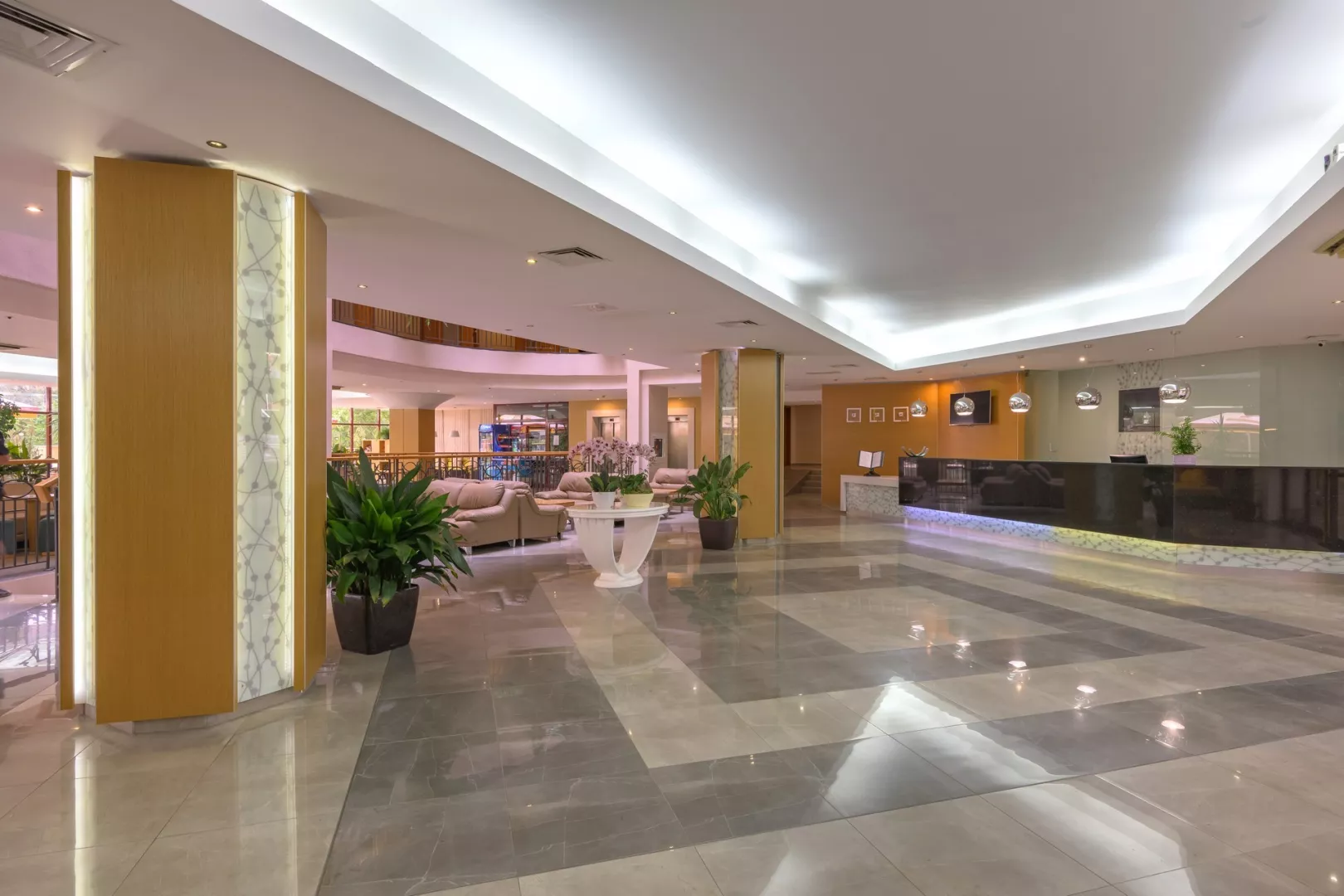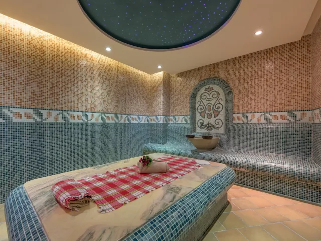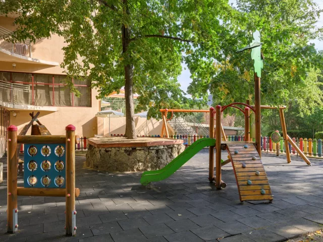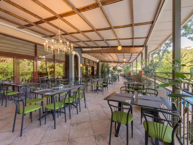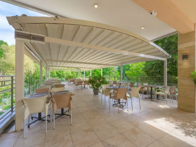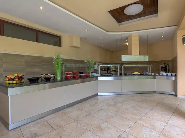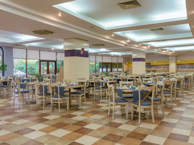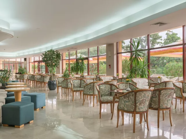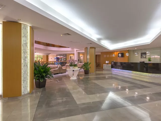 vstupná hala s recepciou reštaurácia reštaurácia s obsluhou (výber z menu) lobby bar bar pri bazéne Wi-Fi (zdarma) vonkajší bazén (lehátka, slnečníky a osušky zdarma) detské ihrisko detské animačné programy krytý bazén športová a večerná zábava wellness centrum zmenáreň obchod