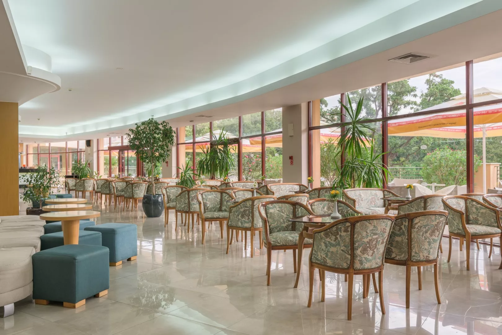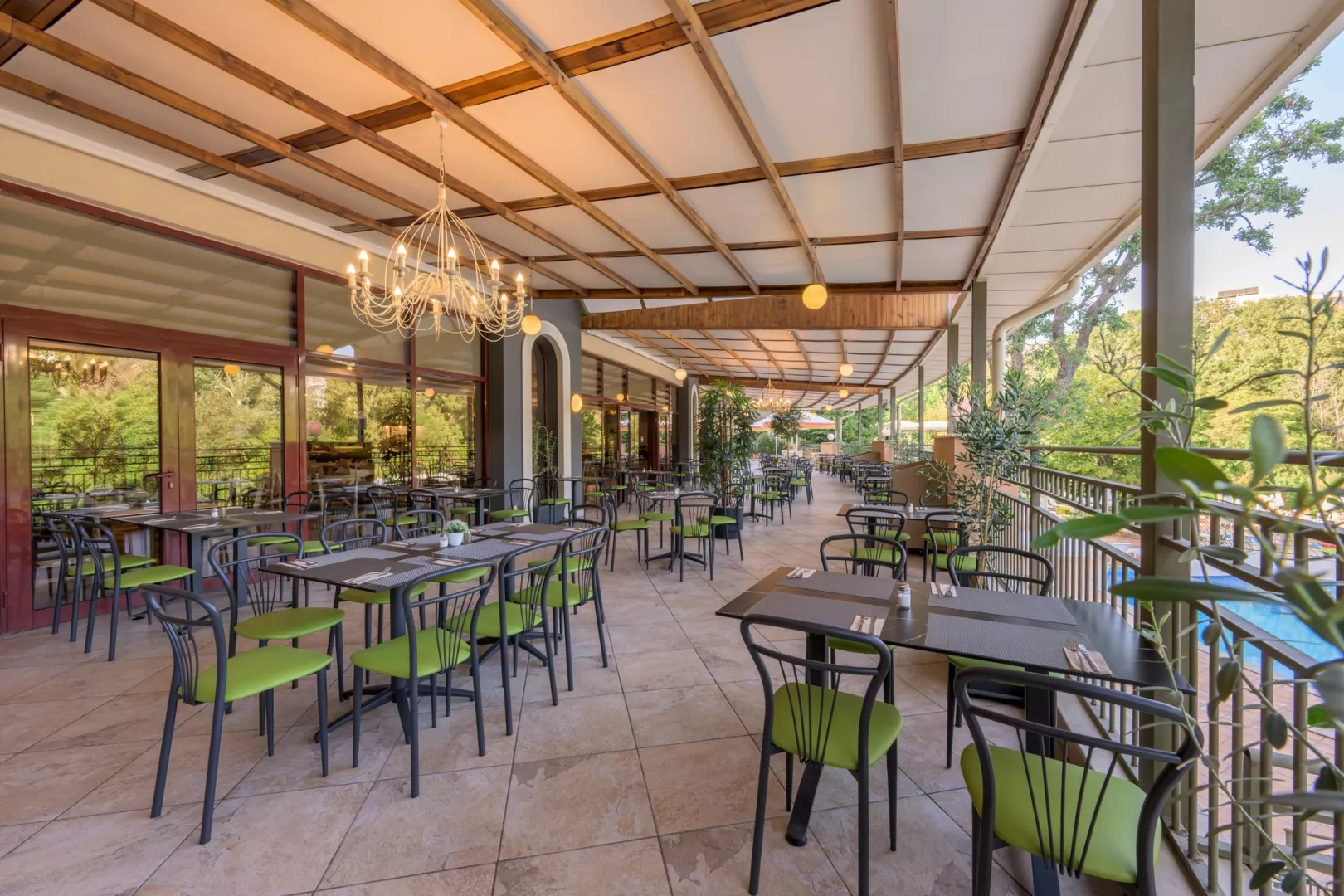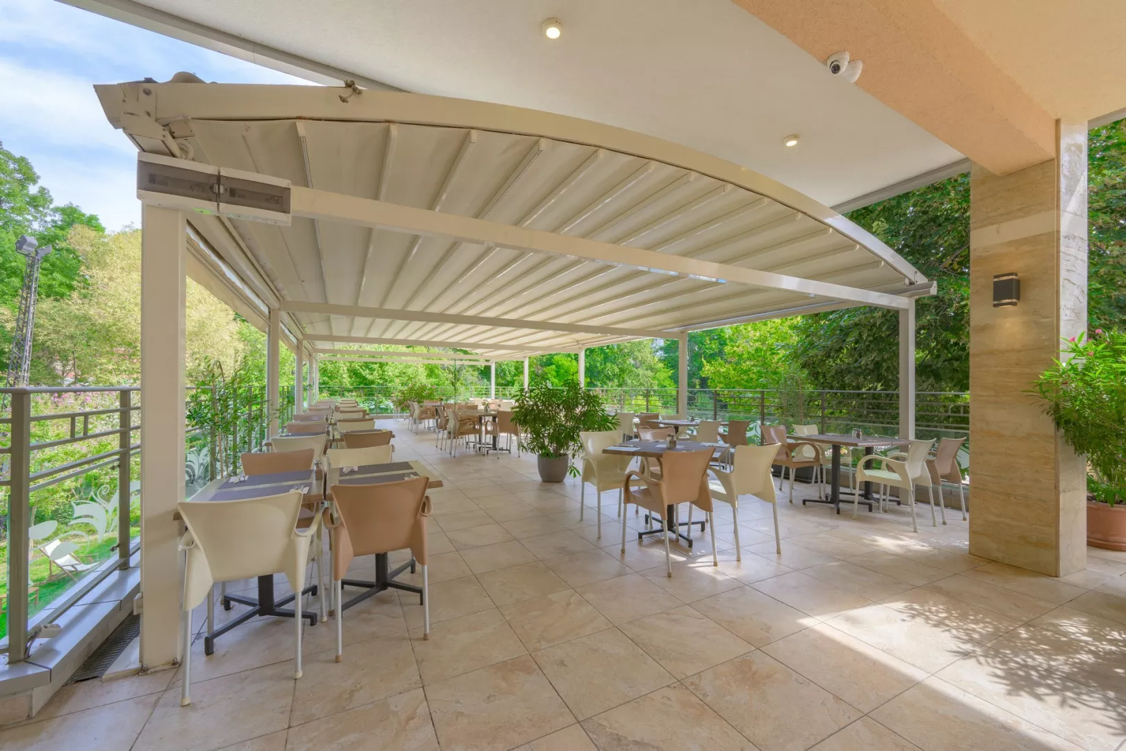 vstupná hala s recepciou reštaurácia reštaurácia s obsluhou (výber z menu) lobby bar bar pri bazéne Wi-Fi (zdarma) vonkajší bazén (lehátka, slnečníky a osušky zdarma) detské ihrisko detské animačné programy krytý bazén športová a večerná zábava wellness centrum zmenáreň obchod