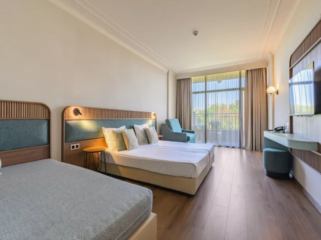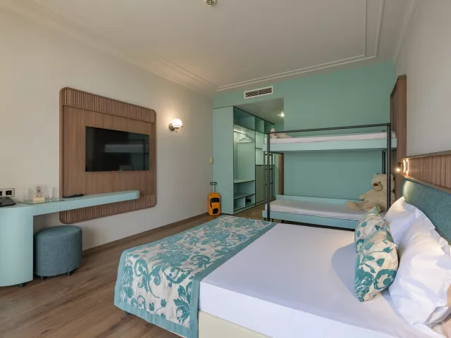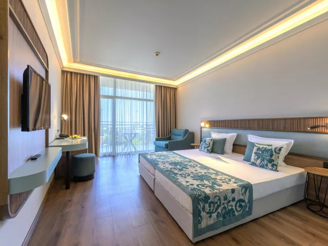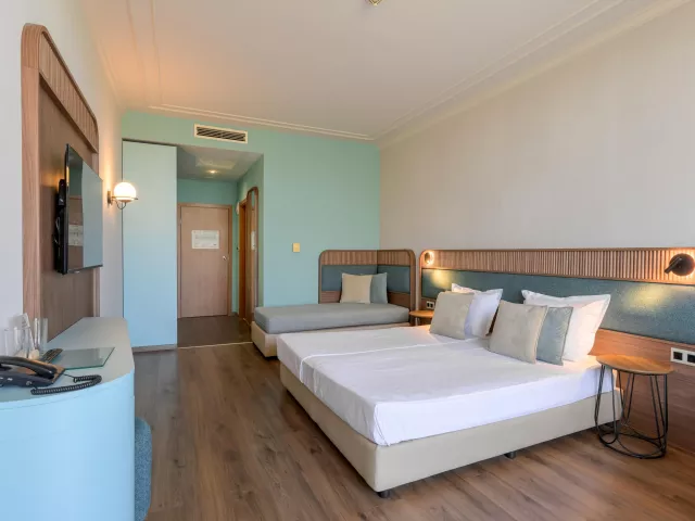 Dvojlôžková izba centrálne riadená klimatizácia telefón TV/sat. chladnička (zadarmo) Wi-Fi pripojenie (zadarmo) trezor (za poplatok) kúpeľňa/WC (sušič vlasov) balkón Ostatné typy izieb (pokiaľ nie je uvedené inak, majú izby vyššie uvedené vybavenie) Dvojlôžková izba, Deluxe: modernejšia Dvojposteľová izba, Deluxe, Bočný výhľad mora: modernejší, bočný výhľad na more Trojlôžková izba: 3 pevné lôžka Rodinný poko, Palanda: jedna miestnosť, palanda pre deti Rodinná izba, Deluxe: priestrannejšia, 3 pevné lôžka