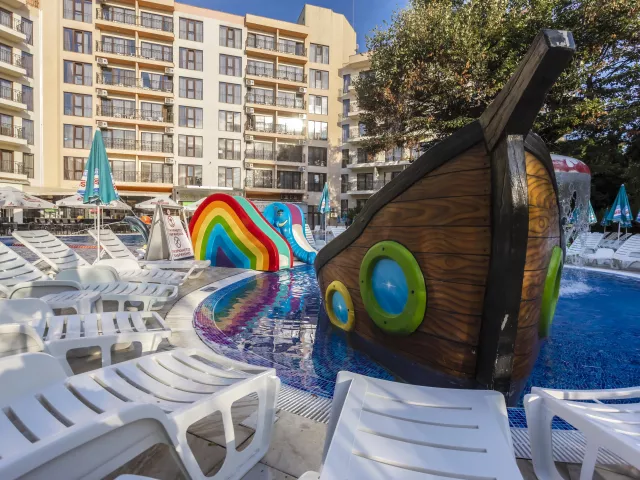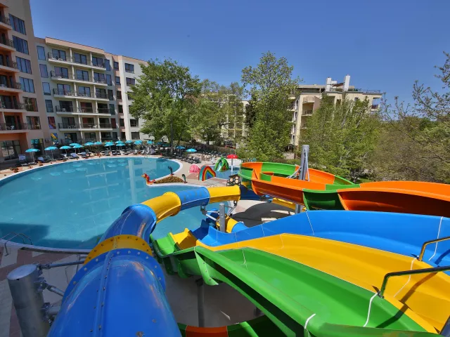 Hotel Prestige sa nachádza v živom bulharskom letovisku na Zlatých pieskoch, približne 150 metrov od nádhernej piesočnatej pláže. Centrum letoviska je vzdialené necelých 200 metrov a nákupné možnosti sú len 100 metrov od hotela. Okolie hotela ponúka množstvo reštaurácií, barov a zábavných podnikov, čo prispieva k pestrému vyžitiu počas dovolenky. Hotel je prepojený so sesterským hotelom Prestige Deluxe Aquapark Club, s ktorým zdieľa niektoré služby a vybavenie.