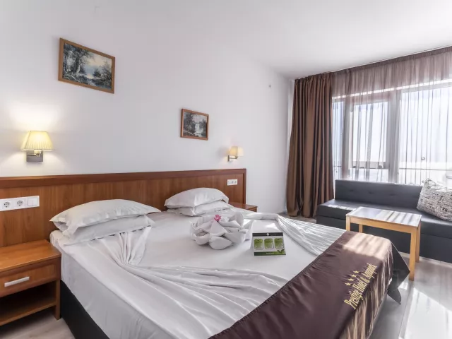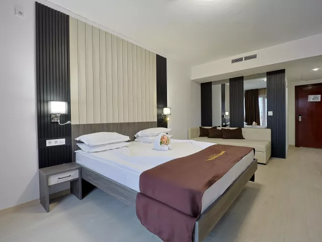 Hotel poskytuje komfortné štandardné 2-lôžkové izby s možnosťou jednej alebo dvoch prísteliek. Izby sú vybavené individuálne ovládanou klimatizáciou, kúpeľňou (vaňa alebo sprchový kút), sušičom vlasov, telefónom, SAT-TV, minichladničkou a setom na prípravu kávy/čaju. K dispozícii sú aj rodinné izby.