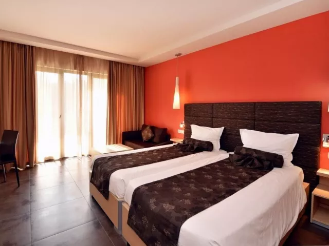 Moderné a priestranné dvojlôžkové izby sú vybavené vlastným sociálnym zariadením, klimatizáciou, SAT TV, telefónom, Wi-Fi pripojením, trezorom a minibarbom (za poplatok). Izby majú aj balkón a na vyžiadanie sú k dispozícii detské postieľky a vysoké stoličky.