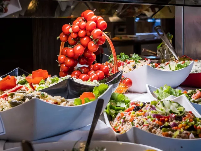 Hotel ponúka stravovanie formou ALL INCLUSIVE, ktoré zahŕňa bohaté bufetové raňajky, obedy a večere, ako aj ľahké odpoludňajšie občerstvenie a široký výber nealkoholických a alkoholických nápojov miestnej výroby.
