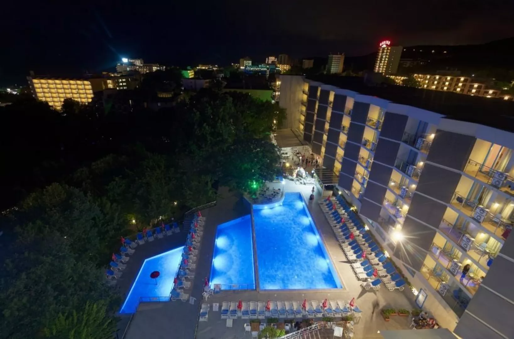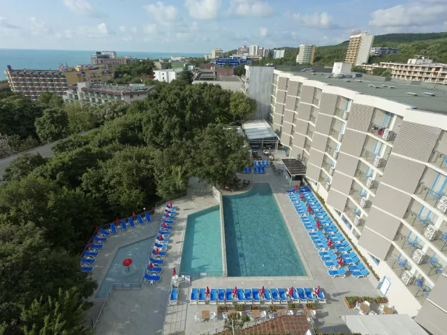 Rezort sa nachádza v centrálnej časti letoviska Zlaté piesky, len 350 m od nádhernej piesočnatej pláže s pozvoľným vstupom do mora. V blízkosti, vzdialených 200 m, nájdete centrum s nákupnými možnosťami a rôznymi aktivitami. Na nezabudnuteľnú dovolenku sa postará animačný tím. Letisko Varna je vzdialené 25 km.