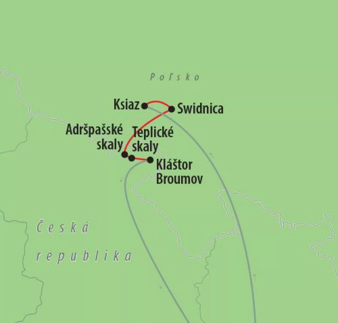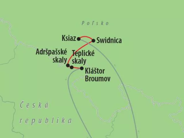 Cesta do Adršpašských skál a okolia je zážitkom plným prírodných krás a historických atrakcií. Navštívte unikátne skalné útvary, turistické trasy s rebríkmi a vyhliadkovými plošinami a užite si plavbu loďkou po jazere. Pre milovníkov histórie je pripravená prehliadka hradu Ksiaz a barokového kláštora Broumov.