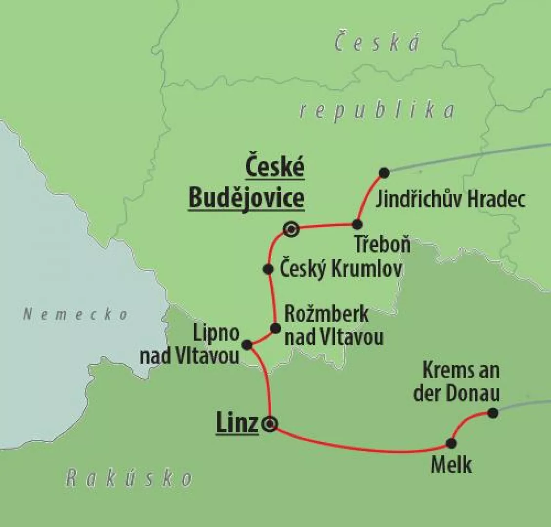 Tento trojdňový poznávací zájazd je skvelou príležitosťou preskúmať krásy regiónu okolo riek Dunaj a Vltava. Program zahŕňa impozantný kláštor Melk, známy z románu Meno ruže, a atmosférické mesto Linz. Ďalej sa môžete tešiť na zábavu v korunách stromov v Lipne nad Vltavou, a vrcholom je návšteva Českého Krumlova, ktorého historické centrum je chránené UNESCO.