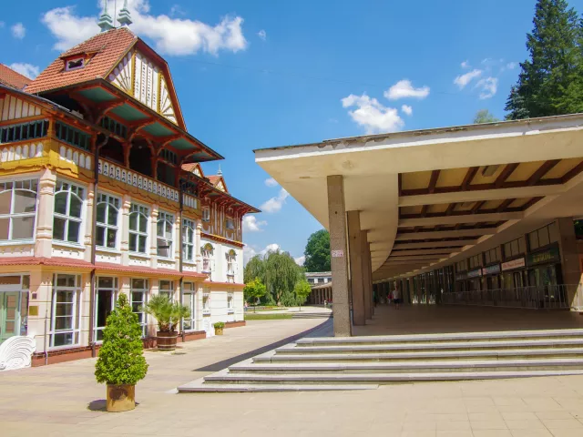 LUHAČOVICE Luhačovice nás očaria jedinečnou kúpeľnou atmosférou, krásnou architektúrou a možnosťou dokonalého oddychu. Naša prechádzka mestom začne pri Jurkovičovom dome , nádhernej stavbe od Dušana Jurkoviča, ktorá svojimi pestrými farbami a ľudovou secesiou dotvára nezameniteľný ráz kúpeľov. Prejdeme sa ku kolonáde , kde si vychutnáme pohodu pri minerálnych prameňoch a nadýchneme sa sviežeho kúpeľného vzduchu. Najznámejším z prameňov je Vincentka , ktorú kedysi vozili až do Viedne a pila sa nielen v kaviarňach, ale aj na cisárskom dvore. Zastavíme sa aj pri hudobnom pavilóne , ktorý je miestom pravidelných koncertov a kultúrnych podujatí, a budeme obdivovať krásu Slnečných a riečnych kúpeľov , historického kúpeľného komplexu, ktorý slúžil na vodoliečbu už pred viac ako sto rokmi. Nevynecháme ani Múzeum Luhačovického Zálesí , kde sa dozvieme viac o histórii kúpeľníctva a tradičnom živote v regióne. Luhačovice nám ponúknu kombináciu histórie, kultúry a oddychu, vďaka ktorej si odnesieme nezabudnuteľné zážitky.