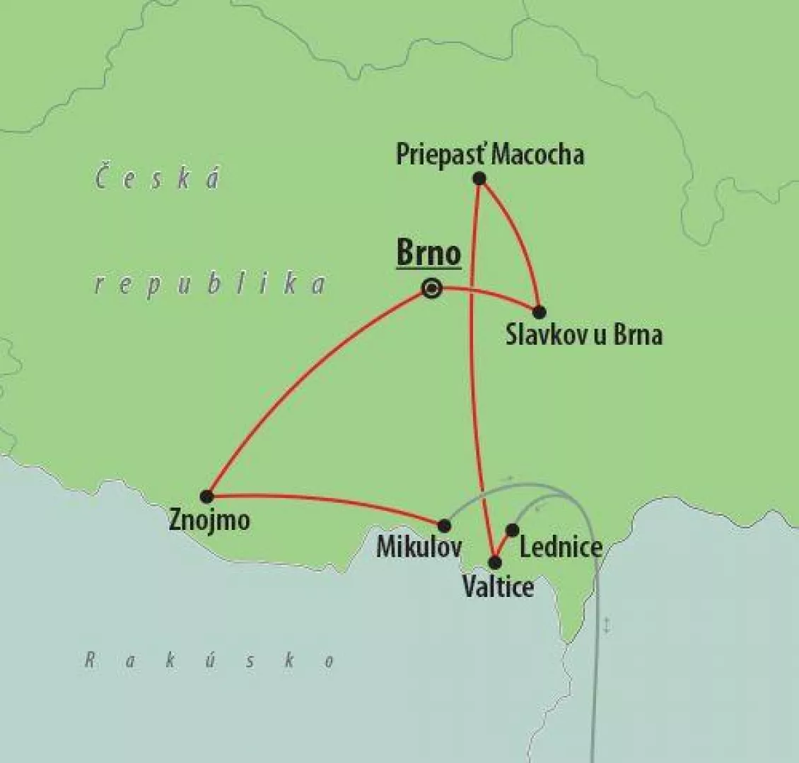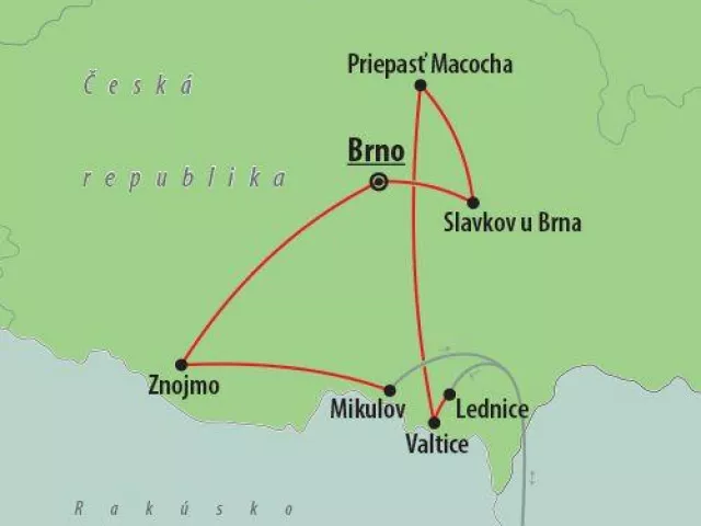 1. deň - odchod z Prešova 5:00 hod, príchod do Moravského krasu patriaceho medzi najvýznamnejšie krasové oblasti v strednej Európe. Prehliadka komplexu Punkevních jaskýň, ktoré sú súčasťou najdlhšieho jaskynného systému v ČR. Objaviteľom sa stal Karel Absolon, ktorý objavil jej časti v rokoch 1909-1933. Možnosť plavby na loďkách podzemnou riečkou Punkvou spájajúcou jaskyne s legendami opradenou priepasťou Macocha. Je najväčšou priepasťou tohto druhu v Európe. Výstup lanovkou k hornému okraju 138 m hlbokej priepasti, pohľad do jej hlbín z vyhliadkových mostíkov. Presun do mestečka Slavkov u Brna - prehliadka barokového zámku. Mesto je známe najmä z roku 1805, keď sa v jeho blízkosti stretli na bojisku traja cisári-cisár Bonaparte, ruský cár Alexander I. a rímsko -nemecký cisár František I. Návšteva Brna, ktorého dominantou je hrad Špilberg týčiaci sa nad mestom, prehliadka centra mesta - chrám sv. Petra a Pavla s románsko-gotickou kryptou, Stará radnica s brnenským drakom, orloj, návšteva unikátnej kostnice kostola sv. Jakuba. Večer ubytovanie v hoteli.