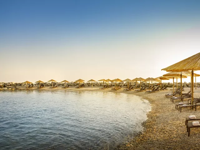 Príjemná kamenistá pláž s upravenými plochami na slnenie sa nachádza neďaleko hotela, a pred susedným hotelom Maestral je menšia štrková pláž s pozvoľným vstupom do mora, ideálna pre deti.