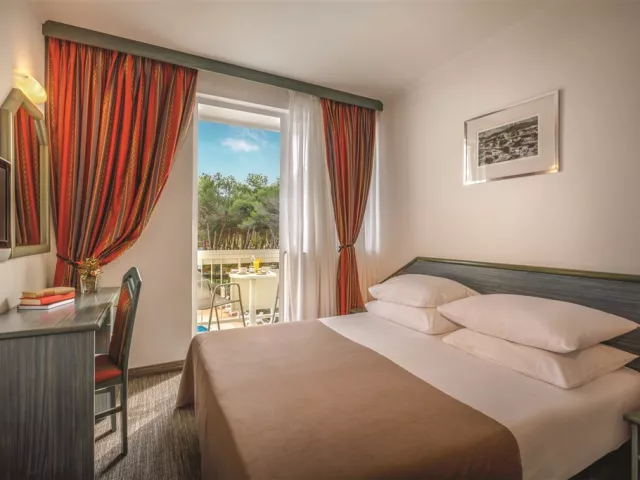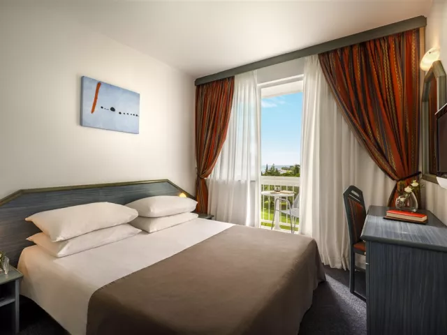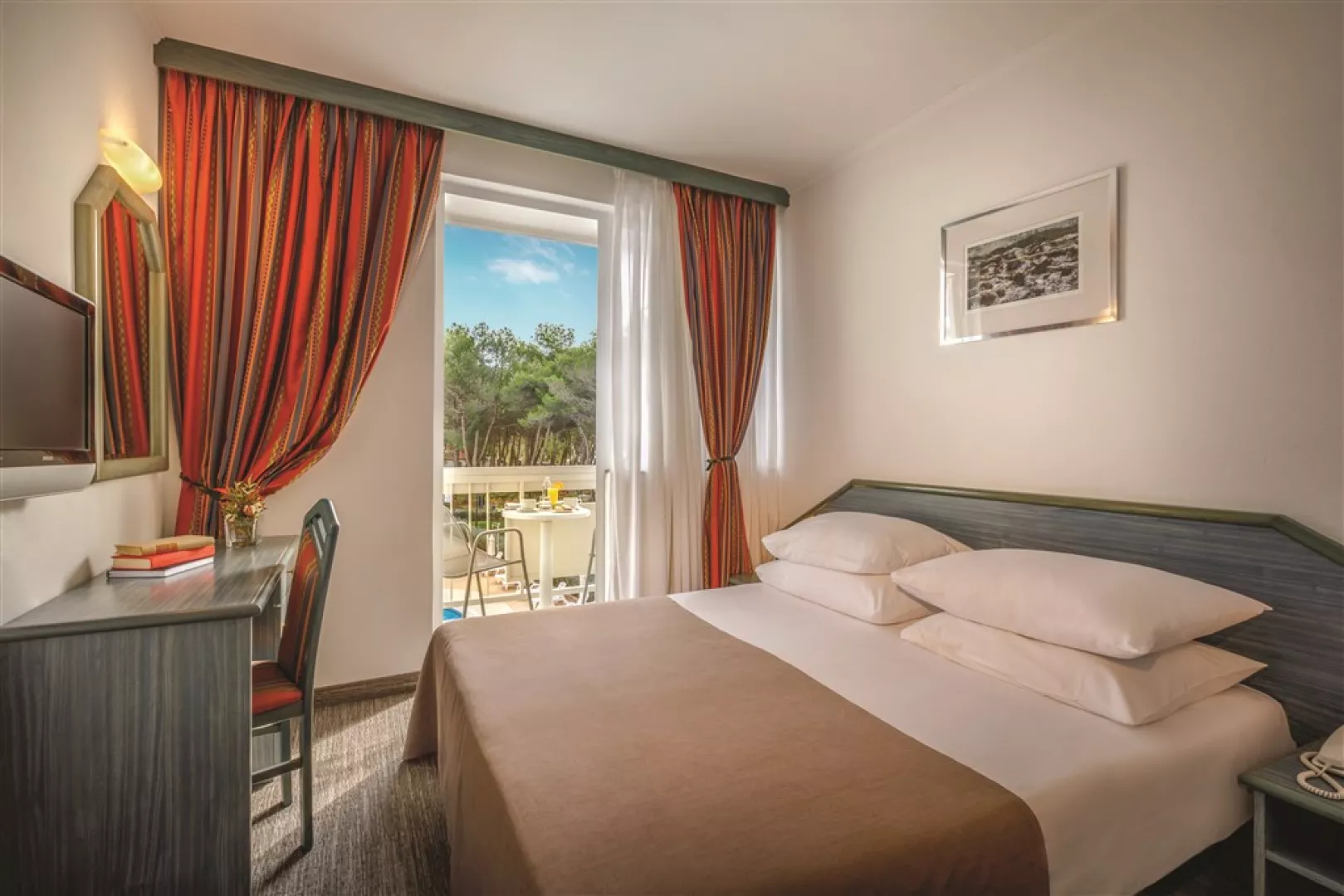 Hotel ponúka menšie (cca 14 m²) klimatizované 2-lôžkové izby s možnosťou prístelky. Izby sú vybavené kúpeľňou s WC, fénom, telefónom, WiFi pripojením a SAT TV. Väčšina izieb má balkón (za príplatok) a sú orientované buď na morskú stranu, parkovú stranu alebo na parkovisko. Balkónové izby s prístelkou sú vhodné pre deti do 12 rokov a sú menej priestranné.