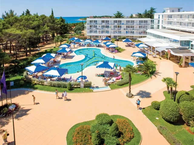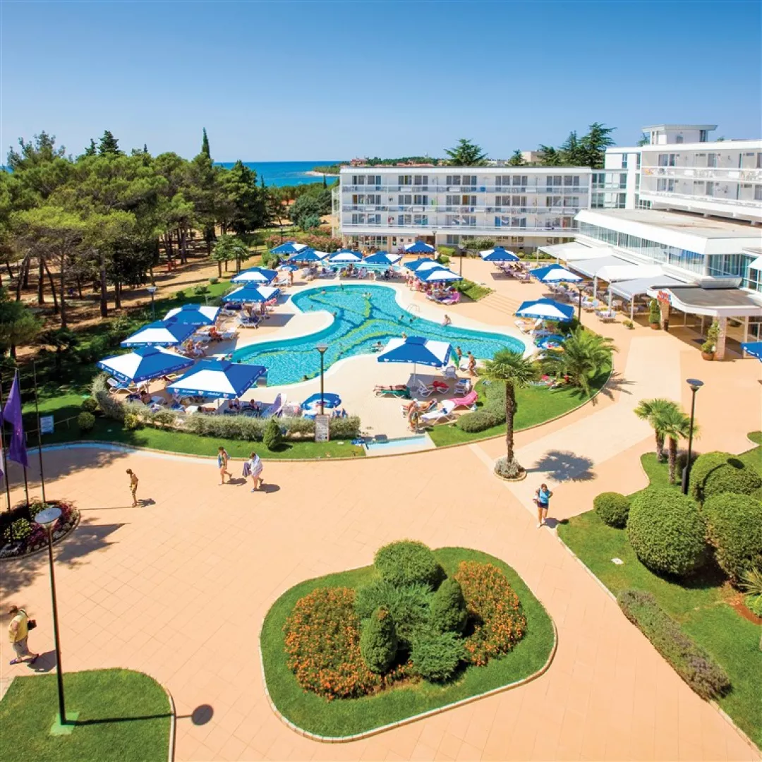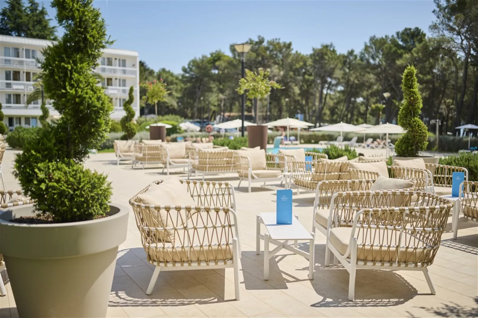 Hotel disponuje recepciou (s možnosťou prenájmu trezoru za poplatok), reštauráciou a aperitív barom. WiFi pripojenie je zdarma, pričom sú k dispozícii aj dva vonkajšie bazény so sladkou vodou pre deti aj dospelých, a slnečná terasa. Ležadlá a slnečníky pri bazéne sú k dispozícii zdarma, v obmedzenom počte. Parkovanie je možné za poplatok. V susednom hoteli Maestral sa nachádza krytý bazén, wellness centrum a klimatizované fitness, ktoré sú tiež za poplatok.