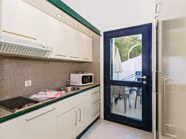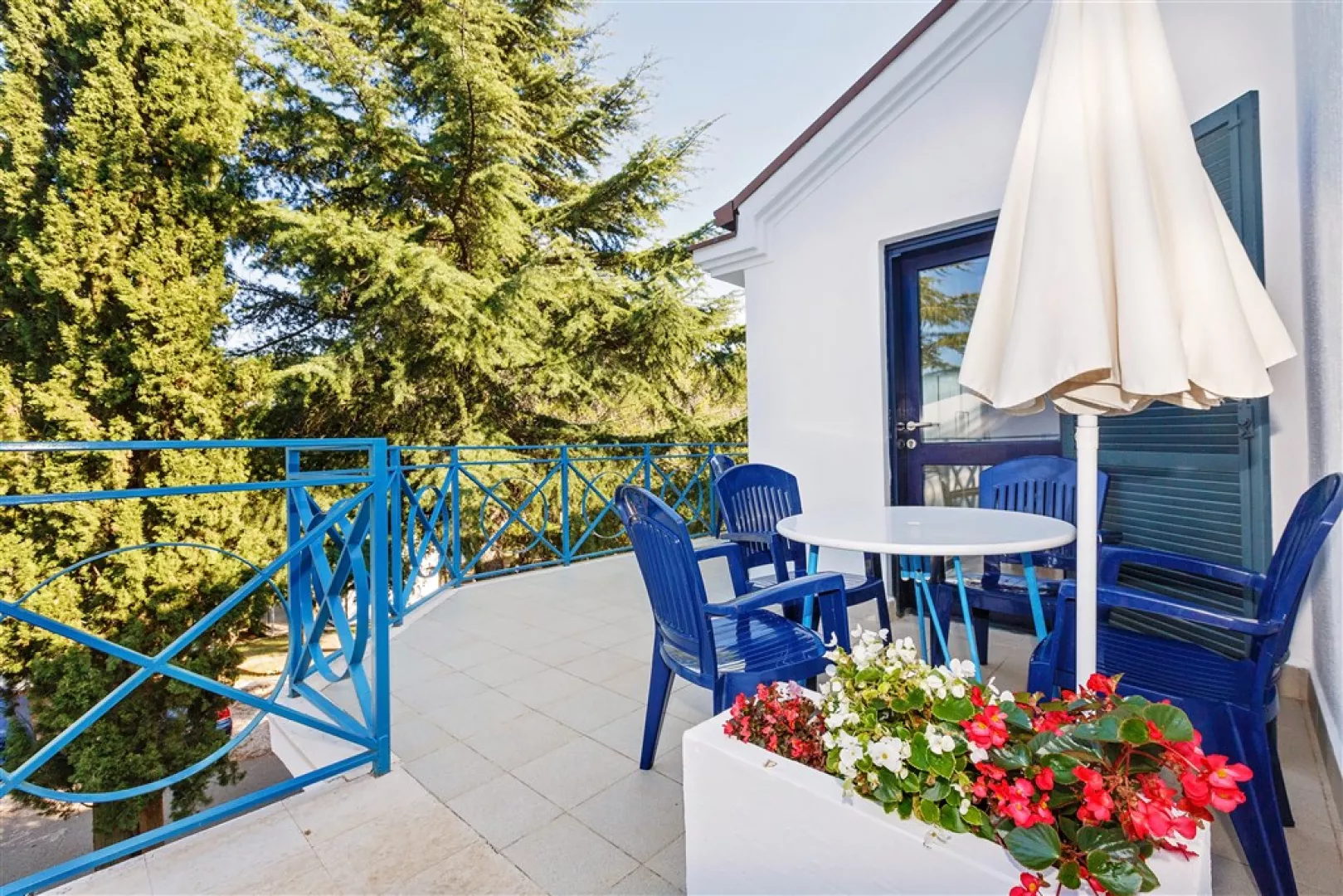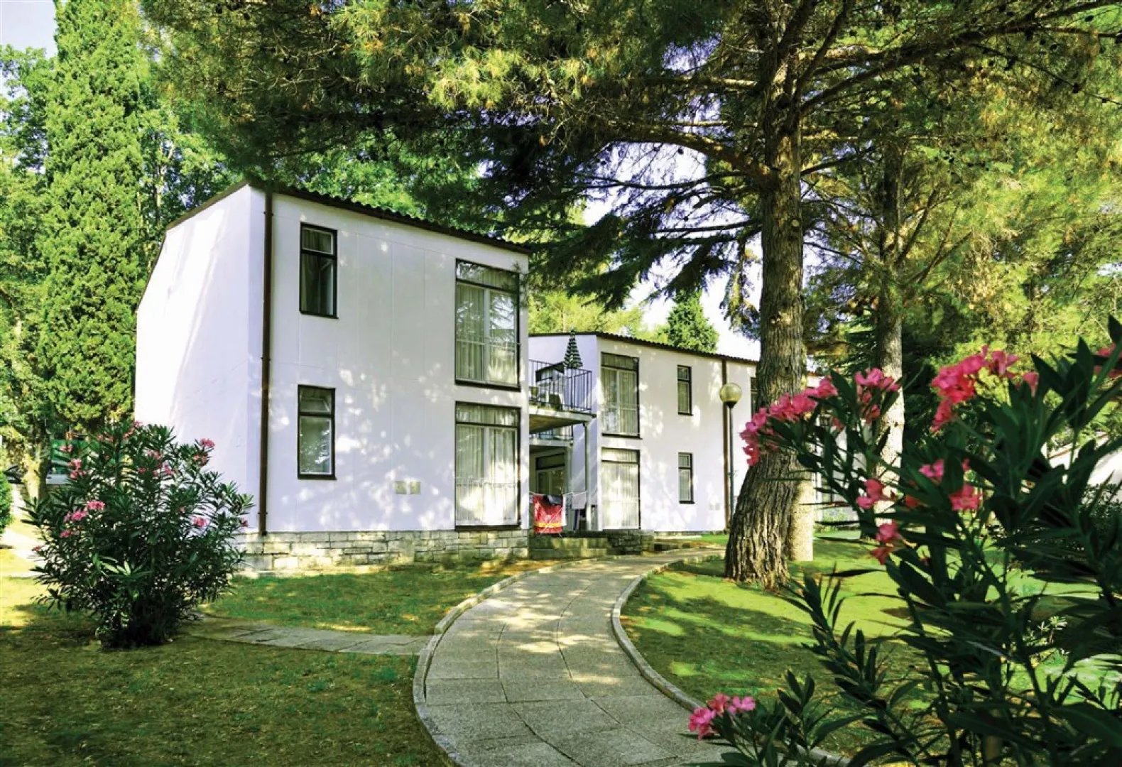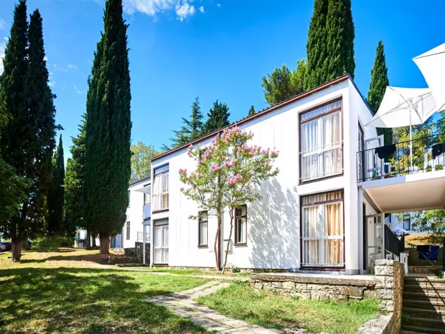 Apartmány sú umiestnené v starších jednoposchodových vilkách uprostred zelene v miernom svahu. Skalnato-kamenistá a štrková pláž s upravenými plochami na slnenie je vzdialená asi 100–400 m od apartmánov. Ležadlá a slnečníky sú dostupné za poplatok.