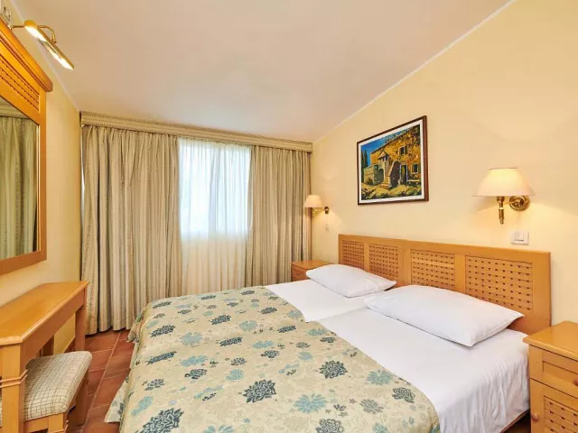 Apartmány Bellevue sa nachádzajú v rámci Plava Resortu v Poreči, v tichej časti obklopenej stredomorskou vegetáciou, len pár minút chôdze od pláže. Ponúkajú ubytovanie v 4★ apartmánoch s jednou alebo dvomi spálňami, kuchynským kútom, kúpeľňou a balkónom alebo terasou. Hostia môžu využívať služby celého resortu – vonkajší bazén, športové ihriská, detské animácie, reštaurácie, bary aj wellness centrum. V rámci areálu je k dispozícii aj ponuka masáží, organizovaných športových aktivít či výletov. Pláž v okolí je upravená, s možnosťou prenájmu ležadiel a slnečníkov. Apartmány Bellevue sú ideálnou voľbou pre rodiny, skupiny priateľov aj aktívnych cestovateľov, ktorí hľadajú pohodlné zázemie v blízkosti prírody, no zároveň s kompletným servisom na dosah.Upozornenie: Tieto stránky majú informatívny charakter. Travel.Sk neručí za chyby alebo neaktuálnosť zverejnených údajov. CK je oprávnená kedykoľvek predĺžiť, zrušiť alebo zmeniť prezentované ponuky, zľavy, bonusy alebo podmienky poskytnutia služby. Záväzný je až návrh zmluvy o zájazde predkladaný zákazníkovi na základe jeho nezáväznej objednávky.