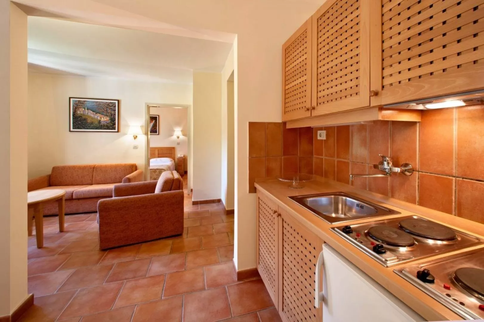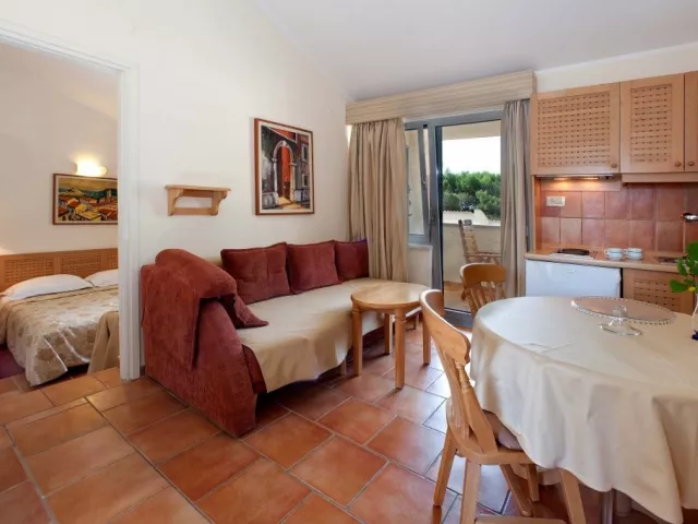 Ubytovanie je bez stravy, s možnosťou varenia. K dispozícii je aj možnosť priplatenia polpenzie v hoteli Mediteran, s raňajkami a večerami podávanými formou bufetu, vrátane čapovaných nápojov počas večere v období od 24.04. do 27.09.
