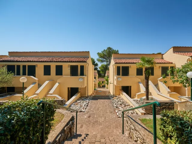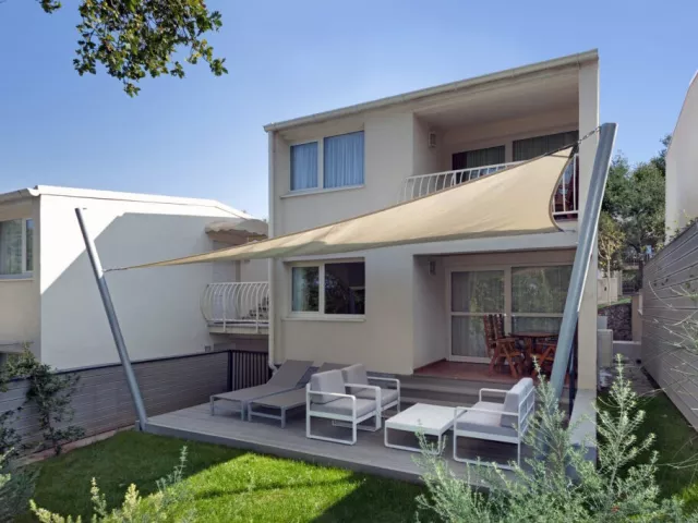 Komplex pozostáva z jednoposchodových viliek s apartmánmi a štúdiami, obklopený mediteránskou zeleňou, s nádherným výhľadom na more. Na pláž, vzdialenú 100 až 400 metrov, sa dostanete po schodoch lemovaných borovicami a oleandrami. Pláže sú prírodné, skalnaté s upravenými plochami na slnenie, ako aj trávnaté a štrkovo-kamenisté. Ležadlá a slnečníky sú dostupné za poplatok. Na pláži sú tiež sprchy.