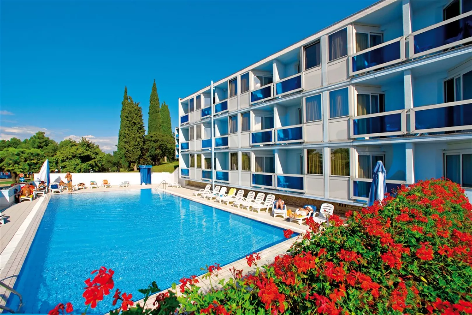 Hotel Plavi Plava Laguna sa nachádza v turistickom stredisku Zelena Laguna v zalesnenom miernom svahu nad zátokou, približne 5 km od historického centra Poreča, ku ktorému sa dostanete turistickým vláčikom. Hotel je ideálny aj pre milovníkov cyklistiky. Pláž je vzdialená 50 m a nákupné možnosti nájdete len 150 m od hotela.