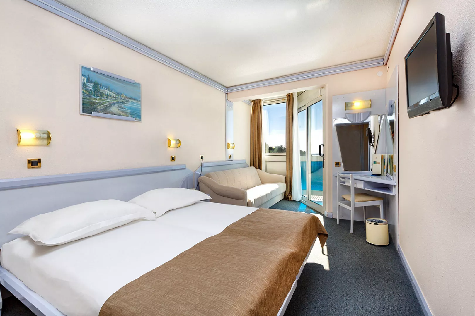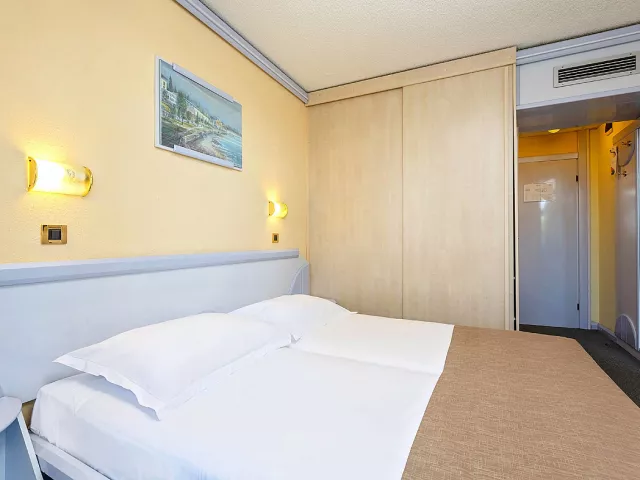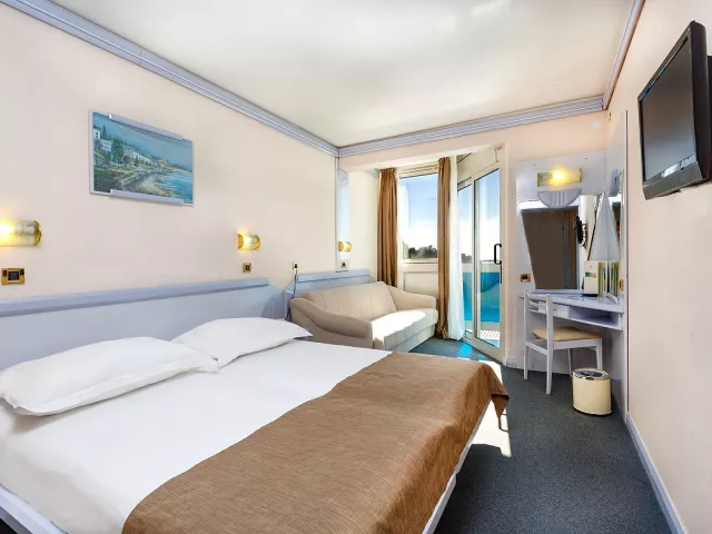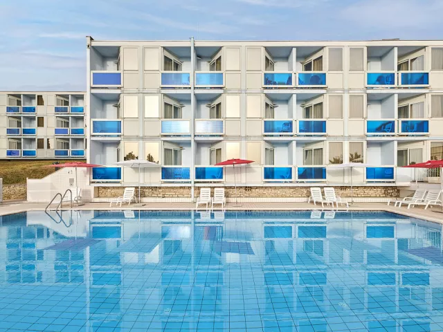 Hotel Plavi sa nachádza priamo pri pláži ocenenej Modrou vlajkou, v pokojnom prostredí Zelena Laguna neďaleko Poreču. Tento trojhviezdičkový hotel je ideálnou voľbou pre aktívnych hostí – ponúka zázemie pre cyklistov, vonkajší bazén, pestrý animačný program a priamy prístup na pobrežnú promenádu plnú taverien a barov. Izby sú útulné, väčšina s balkónom a výhľadom na more alebo okolitú zeleň. V cene pobytu sú zahrnuté nápoje k večeri, tematické galavečery a možnosť objednať si obedové balíčky na cesty. Hotel Plavi spája pohodlie, aktívny oddych a atmosféru stredomorského leta. Skvelá voľba pre páry, rodiny aj cyklistov, ktorí hľadajú cenovo dostupné ubytovanie v blízkosti pláže a prírody.
