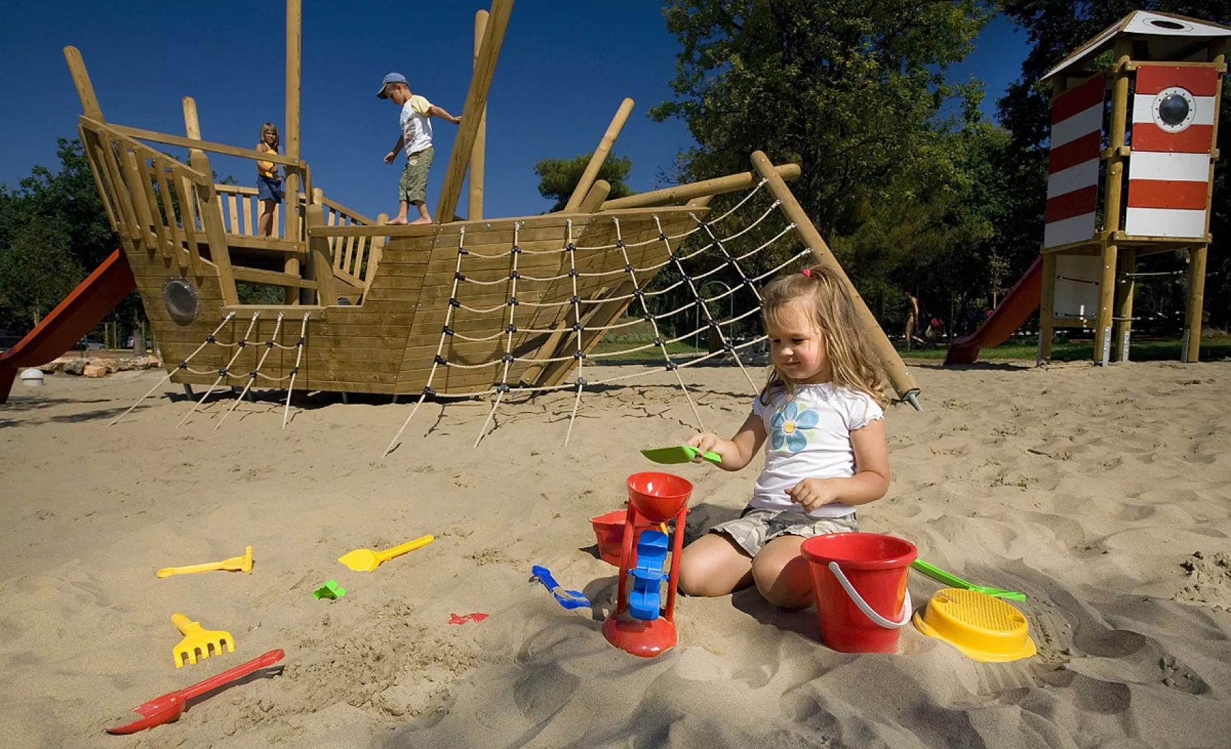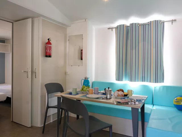 deti do nedovŕšených 2 rokov zdarma (bez nároku na lôžko a služby; nemožno nad rámec plnej obsaditeľnosti mobilhomu) detská postieľka: 3 € / deň, úhrada na mieste (len na požiadanie v CK; max. 1; nemožno nad rámec plnej obsaditeľnosti mobilhome; pre dieťa do nedovŕšených 2 rokov) . Wi-Fi pripojenie – iba vo spoločných priestoroch kempu, nie v mobilných domoch. Niektoré služby a aktivity (napr. animačné programy, športové zariadenia, bazény a pod.) sú prevádzkované predovšetkým v hlavnej sezóne. Ich dostupnosť v okrajových termínoch závisí výlučne od prevádzkovateľa kempu a nie je garantovaná mimo hlavnej sezóny. Posteľná bielizeň a uteráky nie sú automaticky k dispozícii na mieste, klienti si ich môžu priniesť vlastné alebo si ich vopred objednať za poplatok – viď sekcia „dôležité informácie k cene“. . vratná kaucia: 100 € / pobyt / povinná úhrada / platba v hotovosti / na mieste