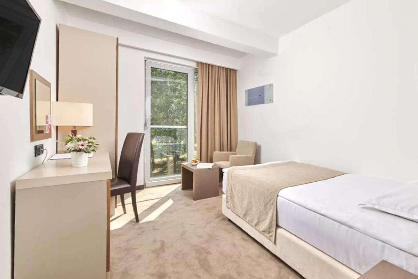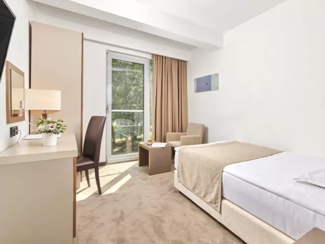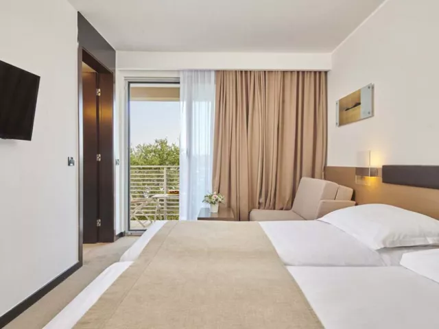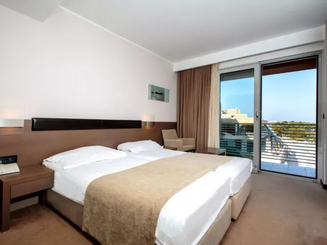 Pláže v zátoke Zelena laguna sa nachádzajú len 300 metrov od hotela. Nájdete tu upravenú trávnatú a kamenistú pláž s plochami na slnenie, bary a reštaurácie, sprchy a ležadlá na pláži pred hotelom (v obmedzenom množstve) zdarma. Vodné športy sú dostupné v blízkosti hotela za príplatok.