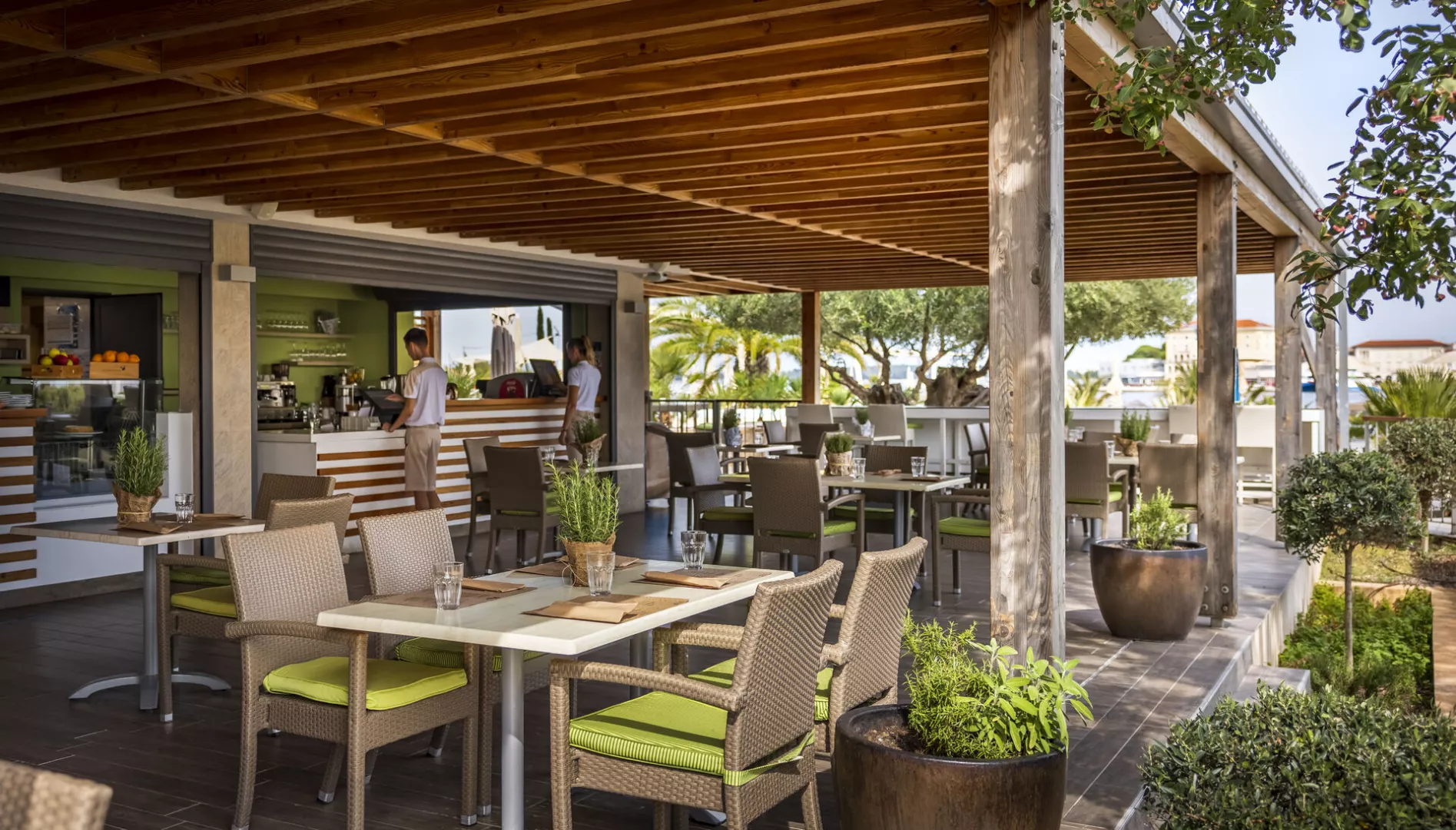 Reštaurácia ponúka all inclusive služby, zahŕňajúce raňajky, obedy a večere formou bufetových stolov, ako aj nealkoholické a teplé nápoje, víno a pivo počas jedál.
