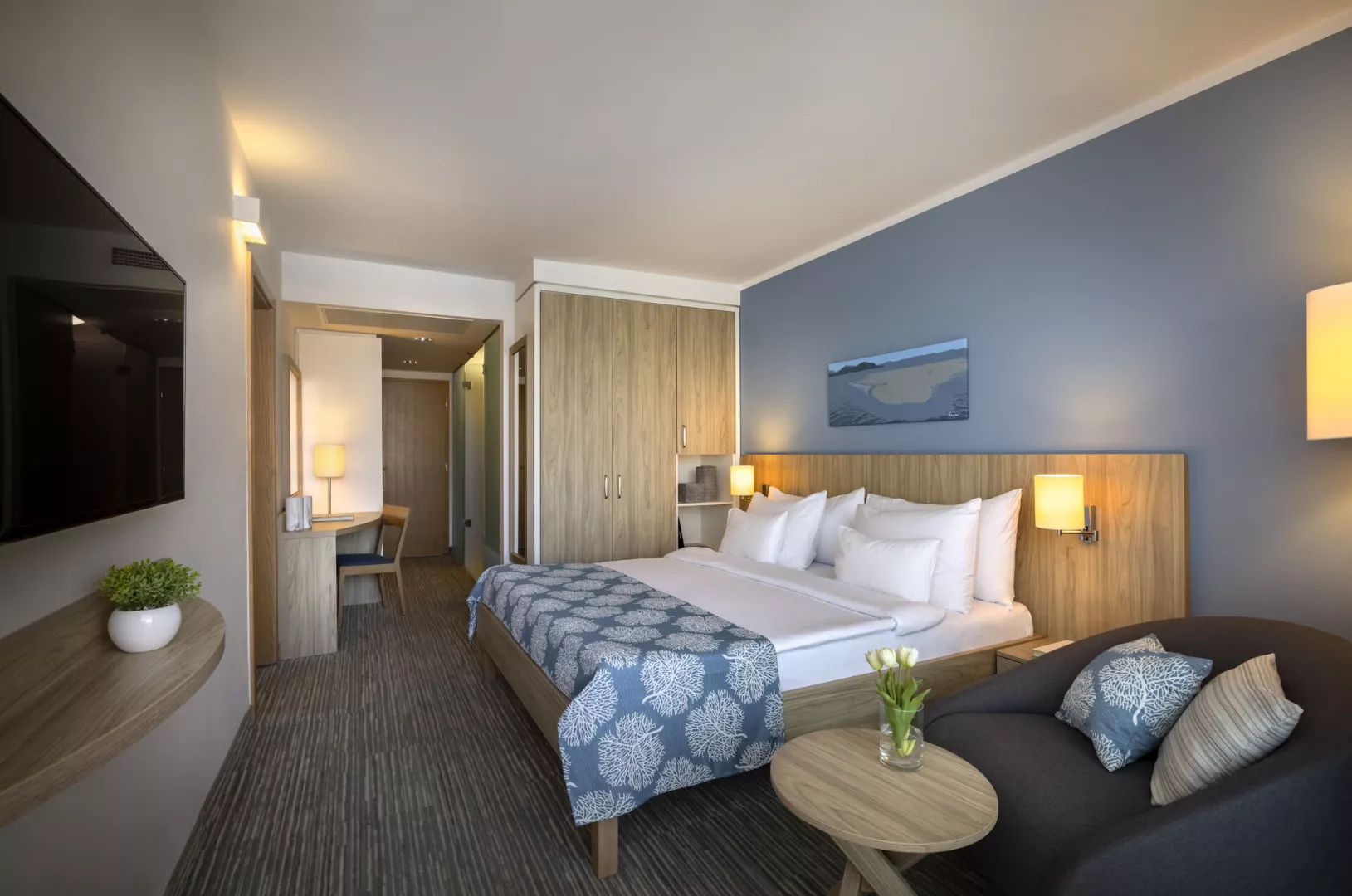 Izby sú vybavené klimatizáciou, kúpeľňou s WC, sprchou alebo vaňou, Wi-Fi (zdarma), LED SAT TV, sušičom vlasov, telefónom, trezorom a minibarom. K dispozícii sú rôzne typy izieb:
