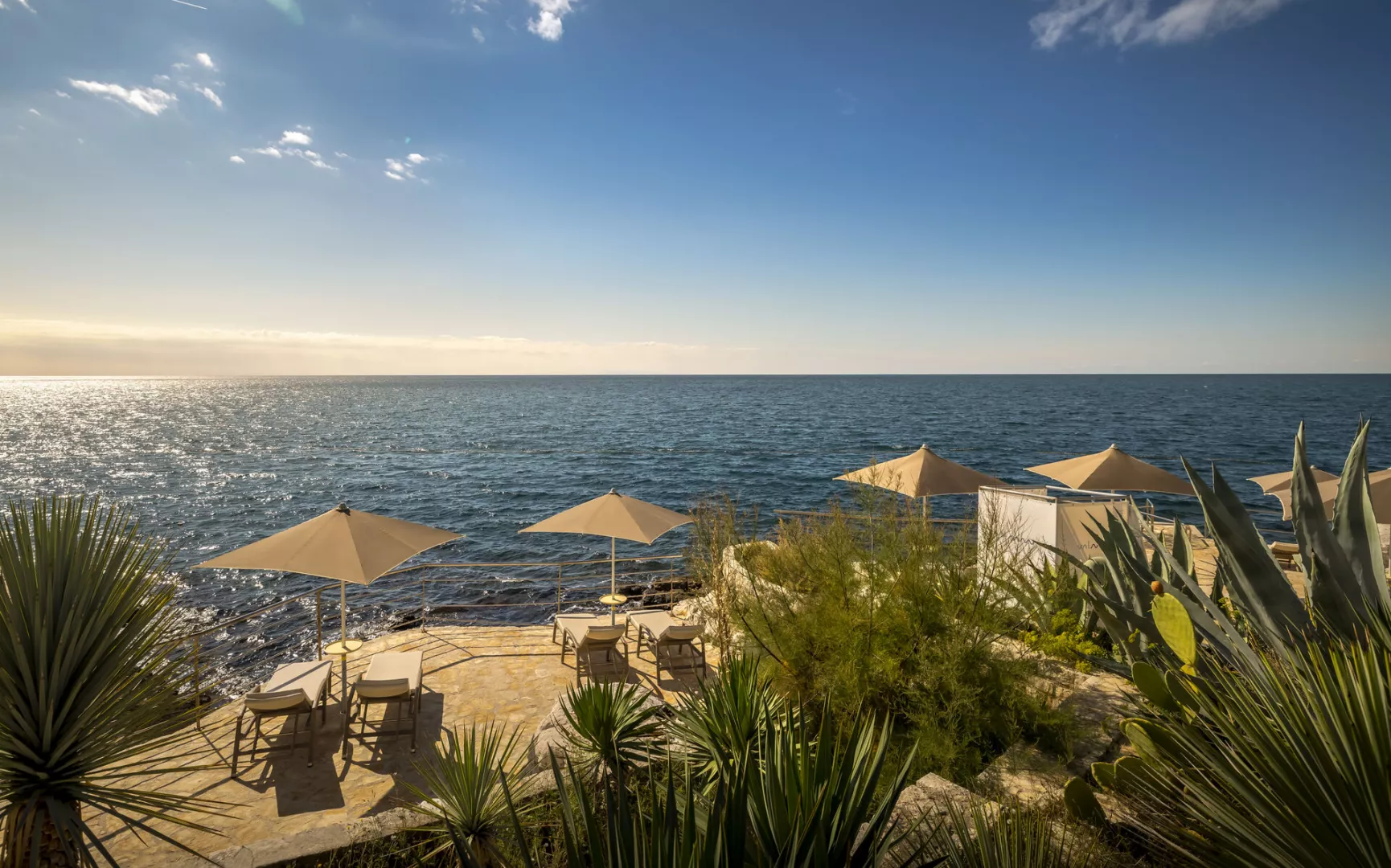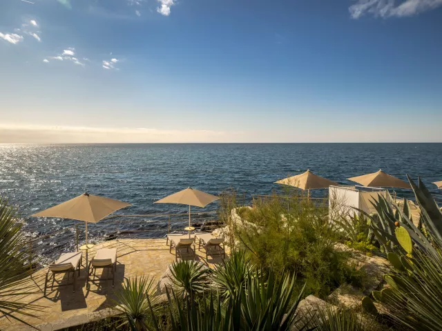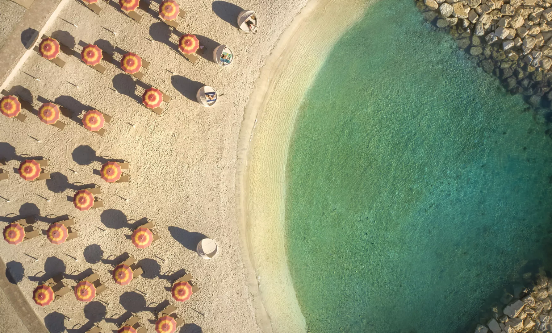 • Val Miramare V Level Relax Beach – skalnatá a dláždená pláž s nerezovými schodíkmi (50 m od hotela, ležadlá a slnečníky pre V Level návštevníkov).