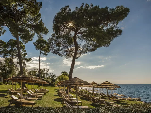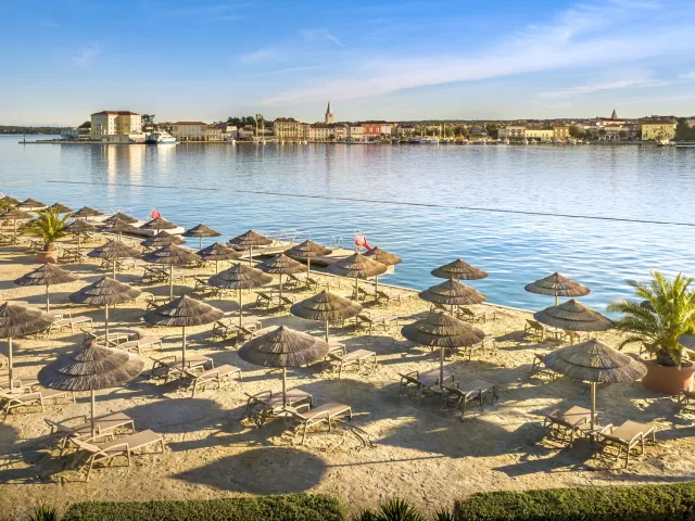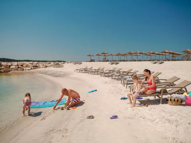 • Val Parenzo Family Beach – skalnatá pláž s nerezovými schodíkmi do mora (50 m od hotela, ležadlá a slnečníky zdarma).
