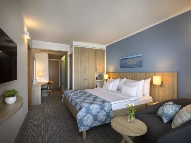 • Dvojlôžková izba s prístelkou pre 2 osoby (29-32 m2, balkón, orientácia na morskú stranu).