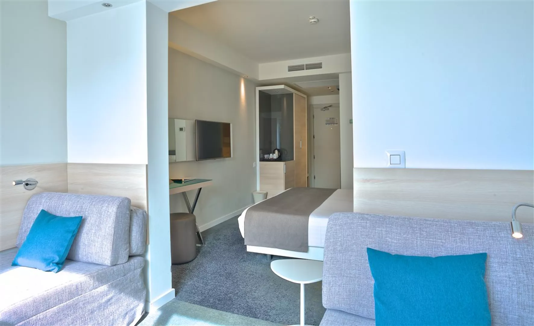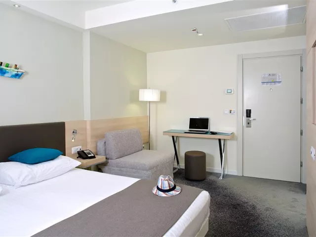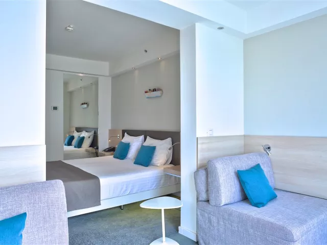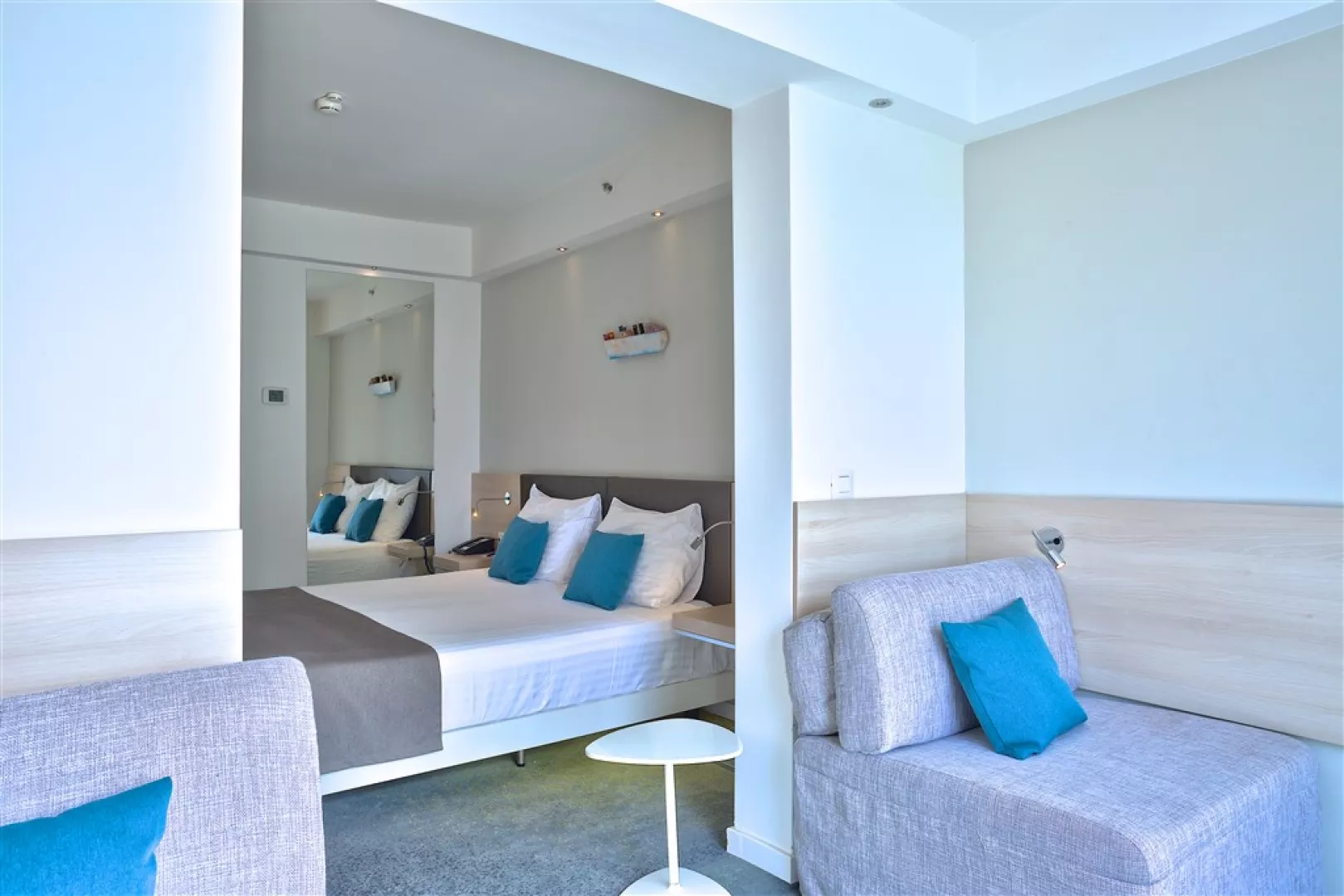 Moderný 4-poschodový hotel pozostáva z dvoch krídiel a je ideálny na aktívnu dovolenku pre rodiny s deťmi aj pre páry. Nachádza sa cca 150 m od pláže, ktorá je vhodná aj pre malé deti vďaka pozvoľnému zvažovaniu a piesku v mori. Blízko hotela je tiež mestská piesočnatá pláž. Ležadlá a slnečníky sú k dispozícii za poplatok.