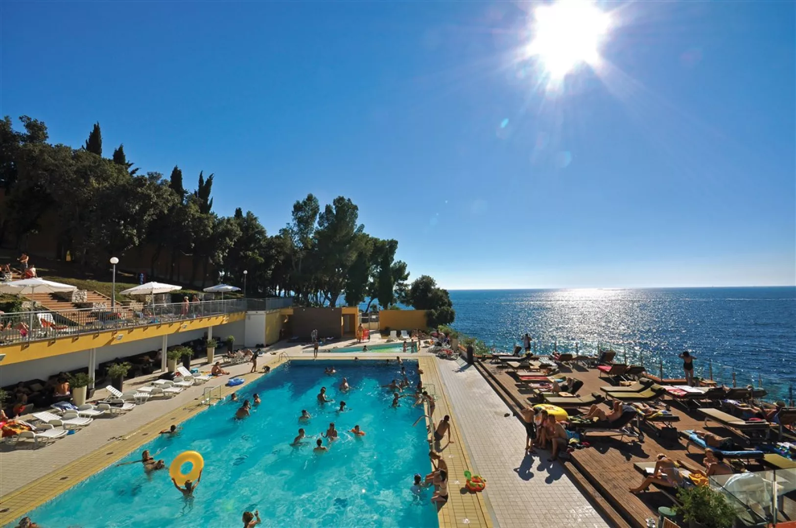 Komplex je terasovito situovaný v miernom svahu a ponúka skalnaté pláže vo vzdialenosti cca 100-300 m. Hostia môžu relaxovať na upravených plochách na slnenie a využiť menšiu okruhliakovú pláž. Lehátka a slnečníky sú k dispozícii za poplatok.
