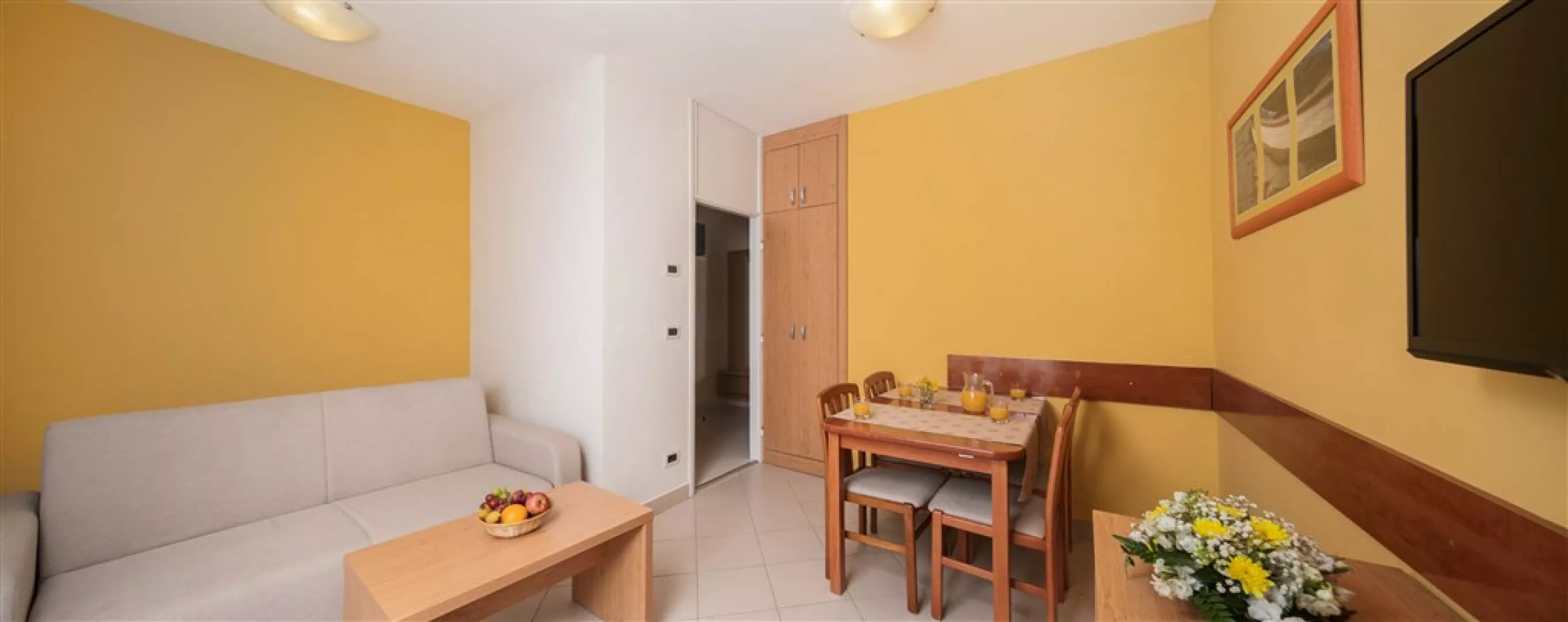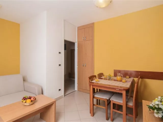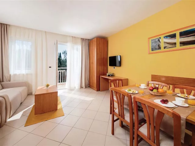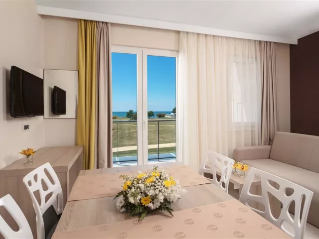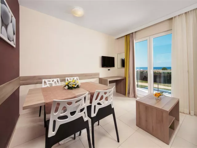 Apartmány sú klimatizované a vybavené kuchynským kútikom, LCD SAT TV, WiFi pripojením, telefónom a trezorom. Každý apartmán má terasu alebo balkón. K dispozícii sú rôzne typy apartmánov, vrátane APP/2+2 (približne 30 m²) a APP/2+3 (približne 37 m²), ktoré sú dostupné v štandarde CLASSIC a SUPERIOR.
