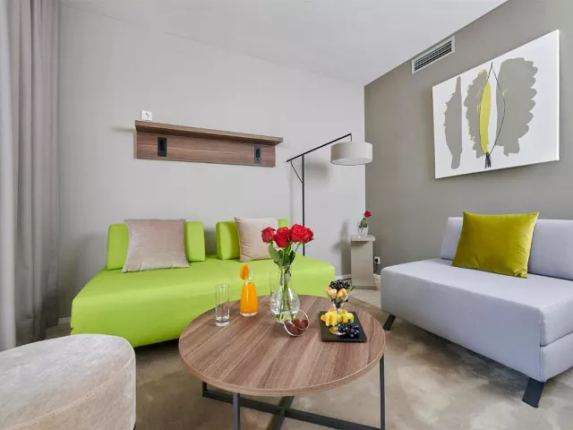 residence práve prechádza rozsiahou rekonštrukciou, ktorej cieľom je zvýšiť komfort a kvalitu služieb, dokončenie prác je plánované na 17. júla 2026 . detská postieľka: zdarma (len na požiadanie v CK; max. 1 nad rámec plnej obsaditeľnosti izby; pre dieťa do nedovŕšených 3 rokov) *maximálna obsaditeľnosť izby Standard 2+1 balkón a Premium 2+1 balkón sú 2 dospelé osoby a 1 dieťa do nedovŕšených 12 rokov * služby za príplatok