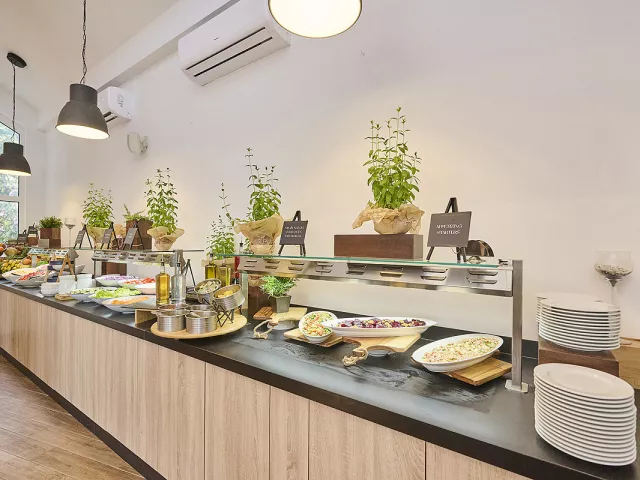 Stravovanie je zabezpečené formou polpenzie, pričom raňajky a večere sú podávané vo forme bufetu. Počas obeda a večere sú zahrnuté čapované nápoje (biele a červené víno, pivo, voda a nealkoholické nápoje).