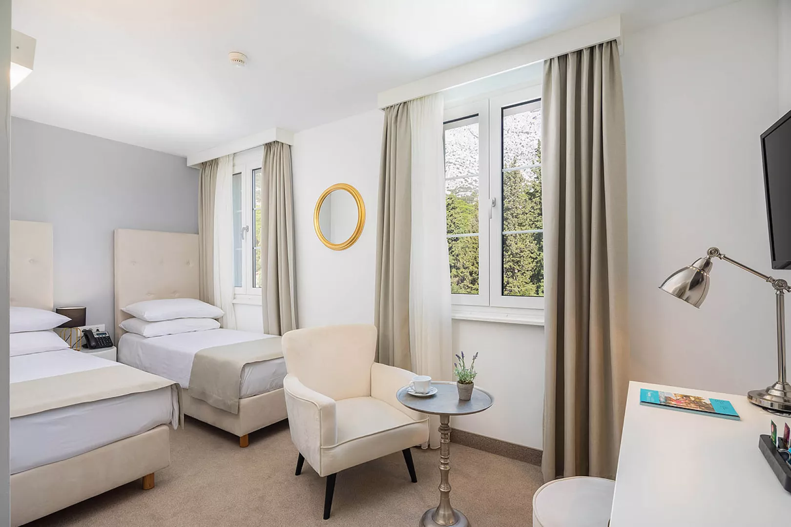 Hotelový komplex pozostáva z hlavnej budovy, viacerých víl a štyroch depandansov (Dingač, Postup, Plavac a Mali), ktoré sú vzdialené približne 50 m od hotela. Pláž ponúka zmes štrkovo-piesočnatej a skalnatej časti, s možnosťou prenájmu ležadiel za poplatok. Plážové uteráky pri bazéne a na pláži sú k dispozícii zdarma.