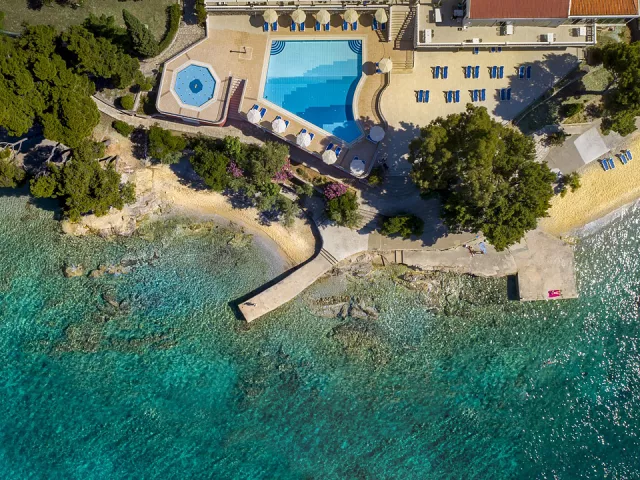 Hotel Aminess Bellevue sa nachádza asi 600 m od centra mestečka Orebič, v malebnom borovicovom lesíku priamo na brehu mora.