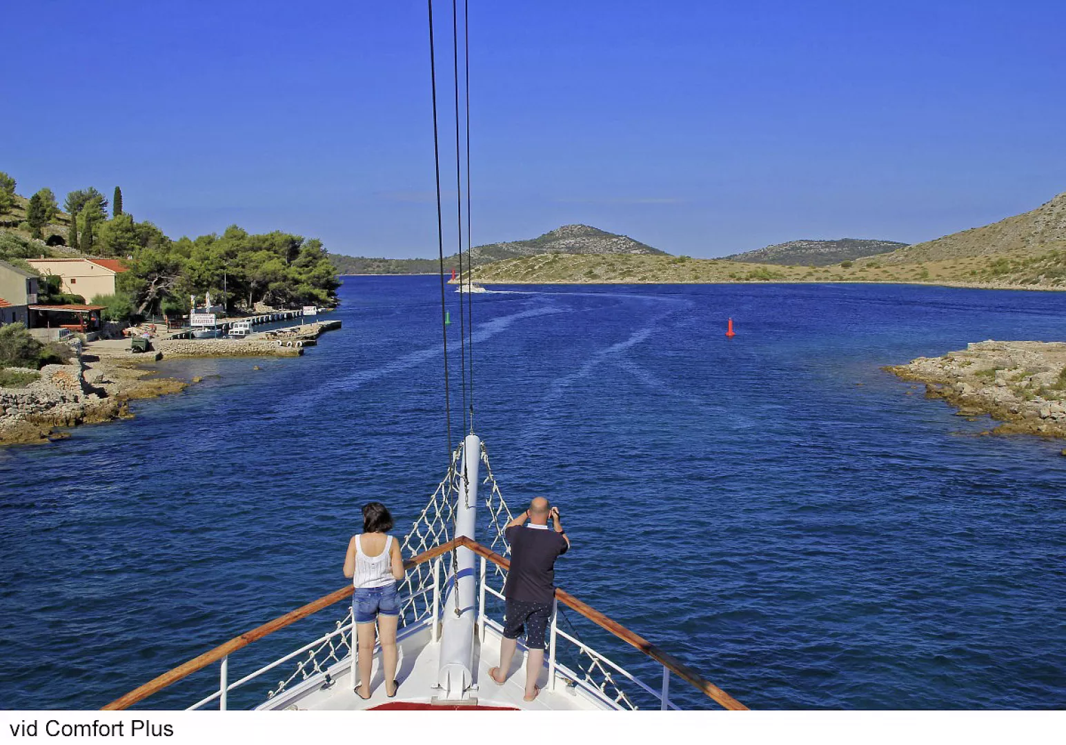 Itinerár deň za dňom 1. deň (sobota): Rijeka – ostrov Krk Medzi 11:30 a 13:00 nalodenie v prístave Rijeka. Možnosť parkovania (za poplatok), batožinu môžete vyložiť pri lodi (9:00 – 12:00). Servisný tím vás následne nasmeruje do garáže a dopraví späť do prístavu. Nasleduje stretnutie so sprievodcom vrátane welcome drinku, budete mať možnosť zoznámiť sa s posádkou a spolucestujúcimi. Polpenzia začína v deň nalodenia obedom. Posádka zdvihne kotvy a vyrážate na ostrov Krk. Vašou prvou zastávkou je odľahlá zátoka, kde sa budete môcť po prvý raz ponoriť do nádherných vôd Jadranského mora. Potom pokračujete do Krku alebo Punatu, kde zakotvíte na noc. 2. deň (nedeľa): ostrov Krk – ostrov Rab Po raňajkách vyrážate na ďalší ostrov – Rab. Asi po dvoch hodinách plavby zakotvíte v romantickej zátoke – budete mať dostatok času na kúpanie a opaľovanie. V neskorých popoludňajších hodinách dorazíte do krásneho mesta Rab, kde vás čaká prehliadka so sprievodcom. Staré mesto Rab s impozantnými zvonicami sa rozprestiera okolo úzkeho skalnatého výbežku obklopeného vodou. Starým mestom vedú tri ulice – „Dolná ulica“ s kaviarňami a krčmičkami, „Stredná ulica“ s butikmi, obchodmi so suvenírmi a zmrzlinou a „Horná ulica“, ktorá vedie k štyrom kostolom so zvonicami. Prenocovanie v Rabe. Po prehliadke mesta máte možnosť večere v niektorej z miestnych reštaurácií. 3. deň (pondelok): ostrov Rab – Zadar V pondelok opustíte Kvarnerský záliv a zamierite do Dalmácie. Po prestávke na kúpanie dorazíte do Zadaru, centra severnej Dalmácie. Miestny sprievodca vás prevedie opevneným starým mestom a ukáže jedinečné pamiatky, ako je Forum Romanum, kruhový kostol Sveti Donat alebo katedrála Sveta Stošija. Užijete si ulice bez dopravy s elegantnými butikmi a množstvom kaviarní alebo sa započúvate do zvukov svetovo unikátnych morských organov, ktorých melódie vytvárajú samotné morské vlny. Prenocovanie v Zadare. 4. deň (utorok): Zadar – NP Kornati – Zadarské súostrovie „Posledný deň stvorenia si Boh želal korunovať svoje dielo, a tak zo sĺz, hviezd a dychu stvoril ostrovy Kornati,“ napísal írsky spisovateľ George Bernard Shaw. Nádherná príroda, nespočet malých aj veľkých ostrovov a tyrkysové more robia z Kornatských ostrovov jedinečný raj. Ide o najväčšie a najhustejšie súostrovie v Jadranskom mori – zahŕňa 147 ostrovov, ostrovčekov a útesov rozprestierajúcich sa na dĺžke približne 35 km. Zo Zadaru budete pokračovať smerom k „Proversa“, úzkemu priechodu medzi ostrovmi Dugi Otok a Kornat, ktorý je vstupnou bránou do národného parku. Po preplávaní fascinujúcou oblasťou národného parku budete pokračovať na sever a zakotvíte na jednom z mnohých ostrovov krásneho zadarského súostrovia – Dugi Otok, Zverinac, Molat alebo Olib. 5. deň (streda): Zadarské súostrovie – ostrov Lošinj Ráno zamierite k ostrovu Lošinj, ktorý je známy nielen svojimi približne 300 slnečnými dňami v roku, ale aj hustými borovicovými lesmi. Pri troche šťastia možno uvidíte delfíny hrajúce sa vo vlnách; vo vodách okolo ostrova Lošinj žije viac než 220 delfínov registrovaných v rámci projektu „Adriatic Dolphin Project“. Po prestávke na kúpanie poplávate do prístavu Mali Lošinj, kde strávite večer a noc. Nasleduje prehliadka mesta so sprievodcom. 6. deň (štvrtok): ostrov Lošinj – ostrov Cres Po raňajkách sa vydáte na susedný ostrov Cres. Typickým znakom ostrova sú nekonečné olivové háje a početné stáda oviec. Netreba dodávať, že pečené jahňacie patrí medzi miestne špeciality. Po prestávke na kúpanie budete pokračovať smerom do malebného mestečka Cres, kde prenocujete. 7. deň (piatok): ostrov Cres – Rijeka Nastal čas rozlúčiť sa s chorvátskymi ostrovmi. Z Cresu poplávate pozdĺž východného pobrežia Istrie do Rijeky. Prenocovanie v prístave Rijeka. 8. deň (sobota): Vylodenie Po raňajkách vylodenie do 9:00 hod.