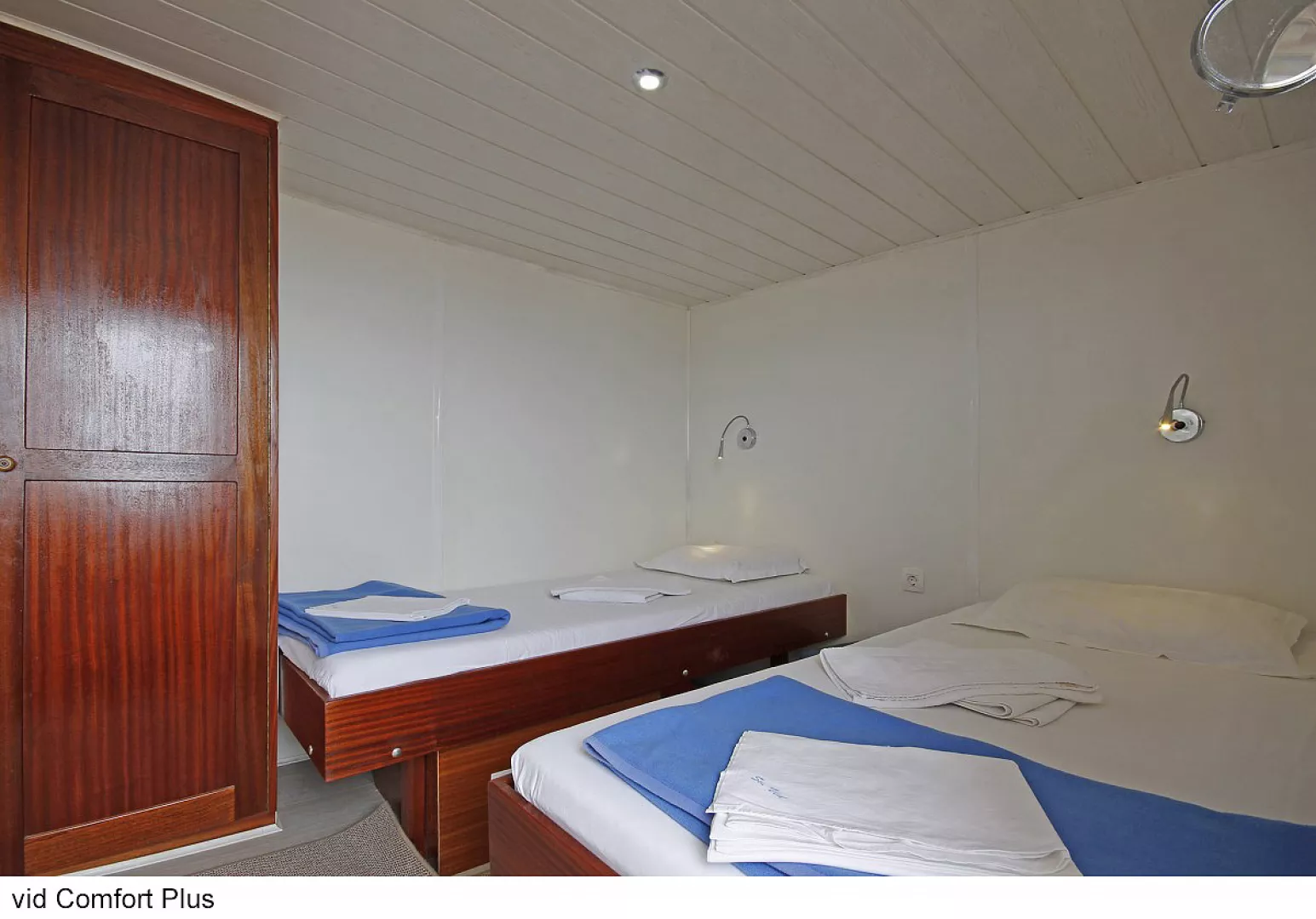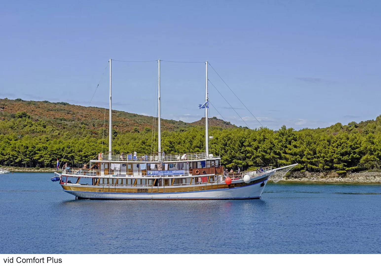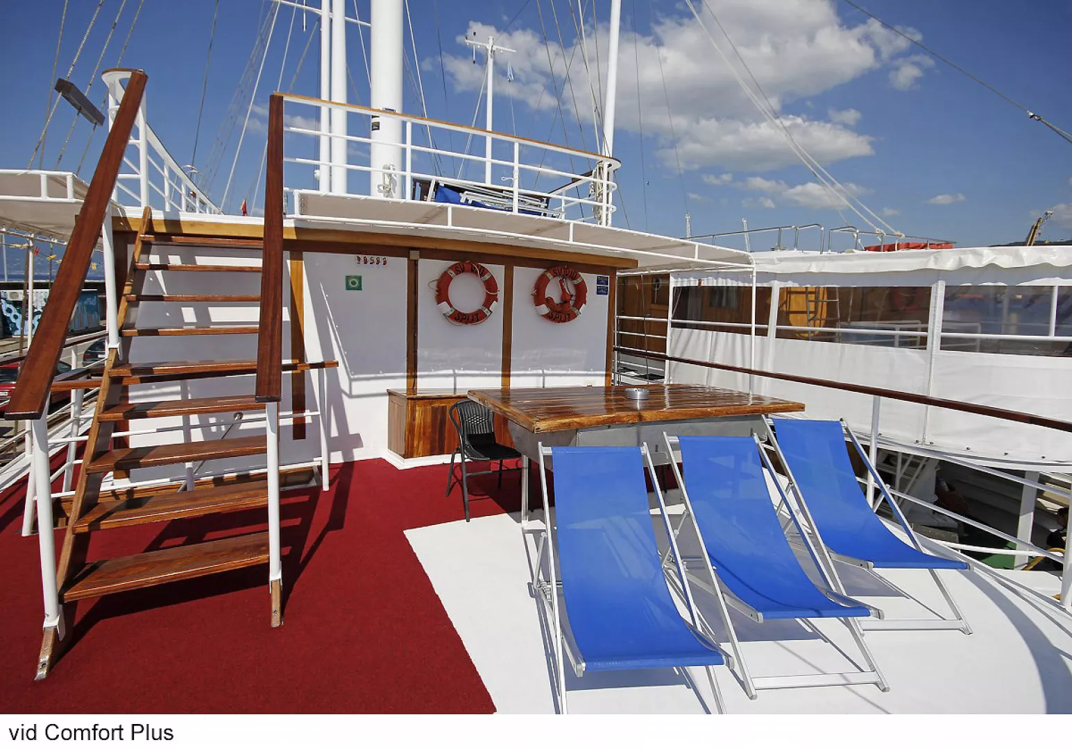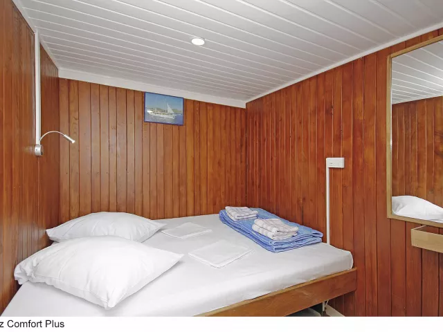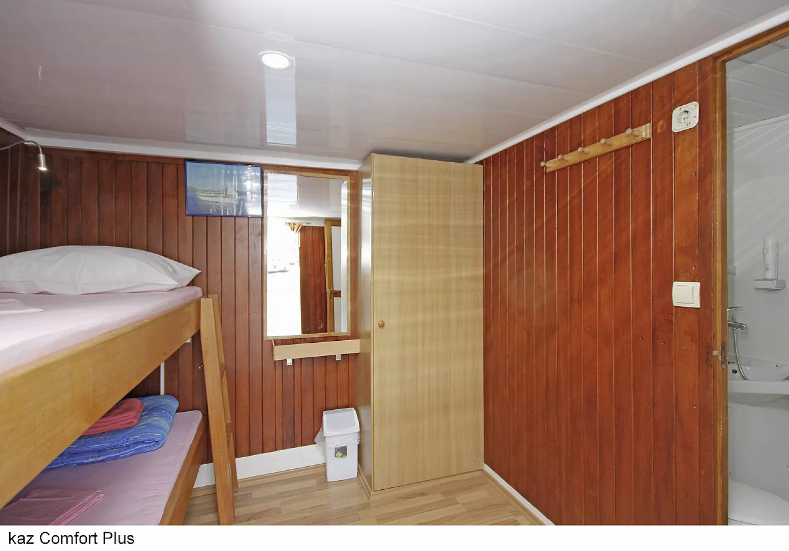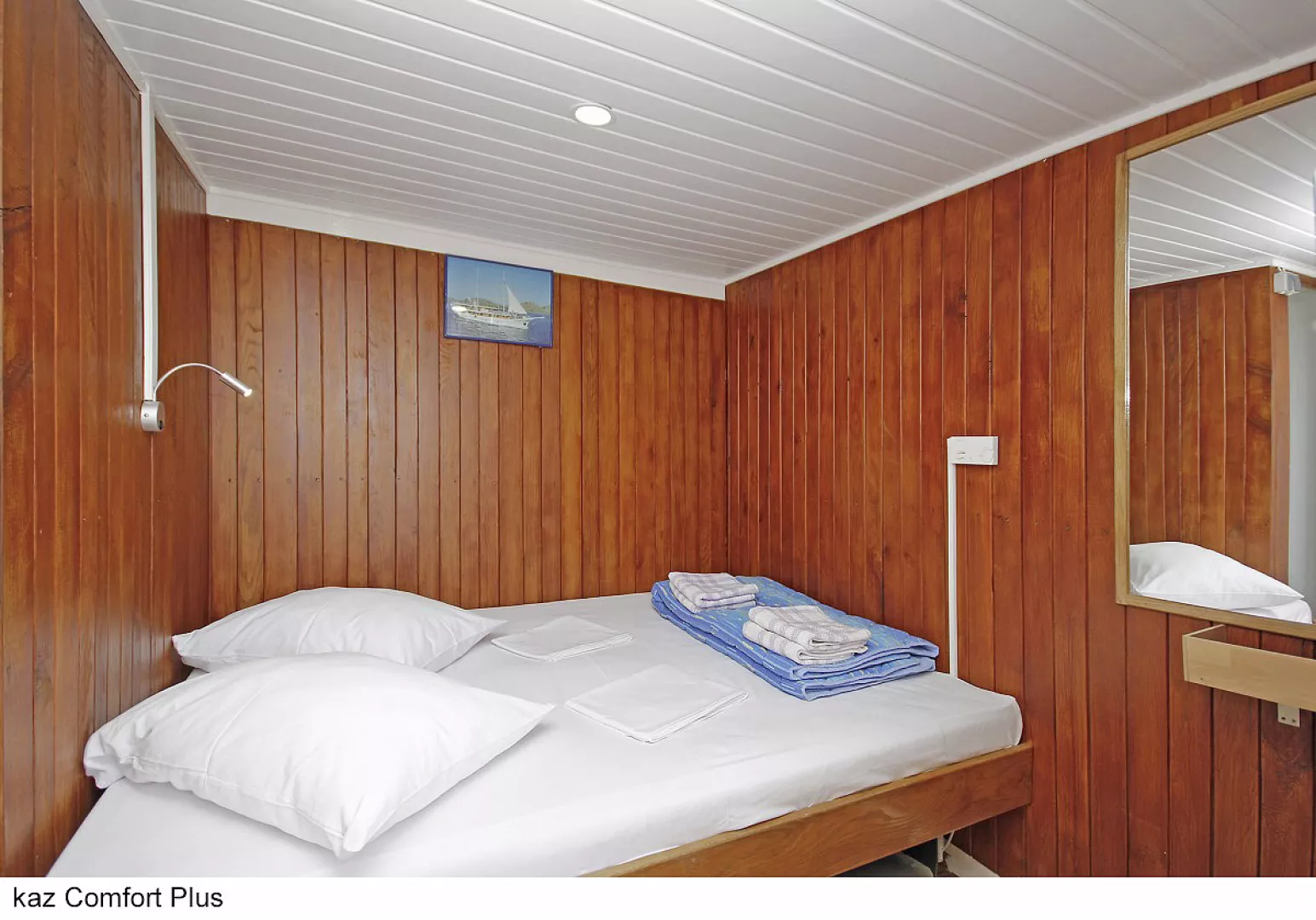 lode kategórie Comfort plus / motorové plachetnice s dreveným alebo oceľovým trupom Lode kategórie Premium – pohodlné a moderne navrhnuté motorové plachetnice a motorové jachty, väčšinou s oceľovým trupom lode kategórie Deluxe / luxusné motorové jachty s oceľovým trupom, krytý salónik na hornej palube a kúpacia plošina vzadu. Za príplatok je možné rezervovať kajutu na palube – iba vopred na vyžiadanie. Pri kategórii Comfort Plus voda zo sprchy odteká do podlahovej vpuste – nejde o samostatný sprchovací kút a nie je oddelený závesom.