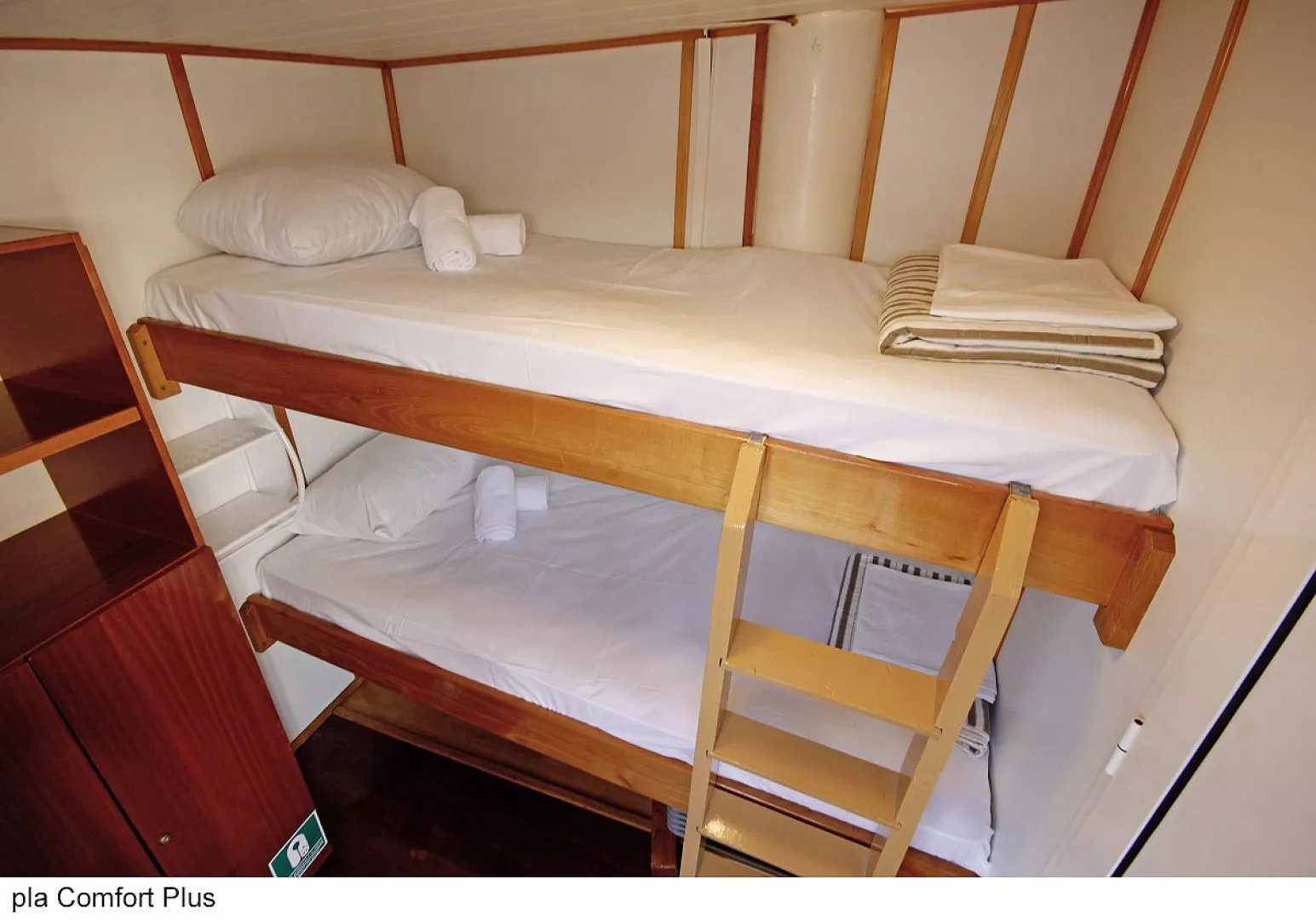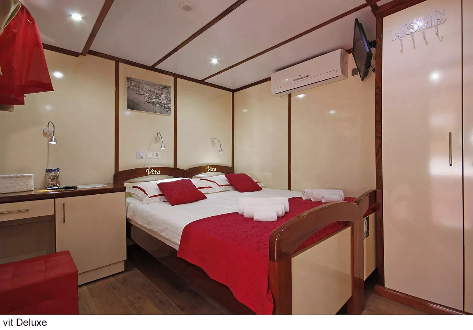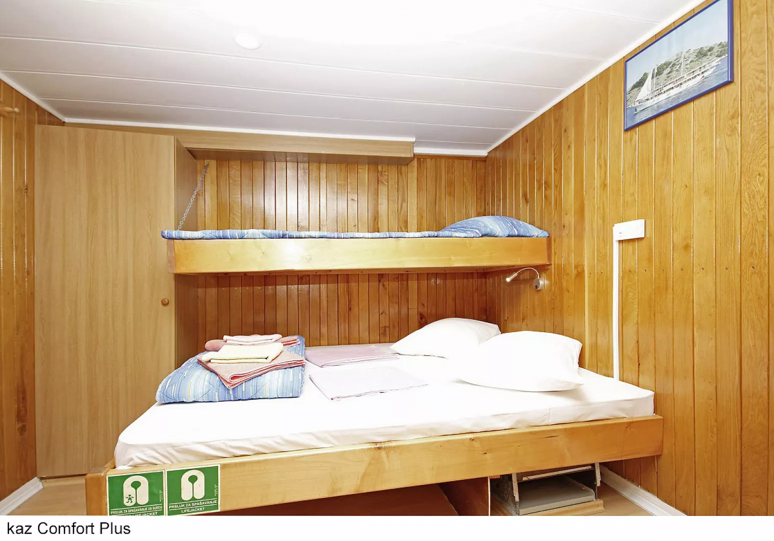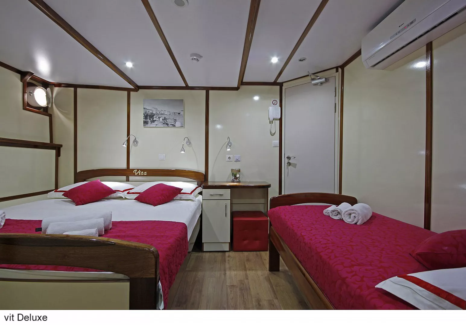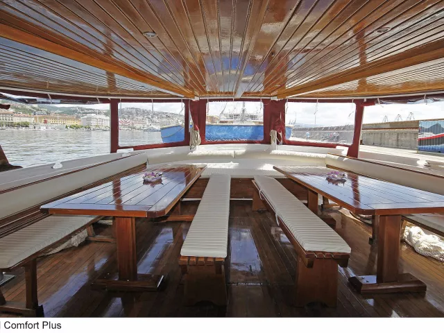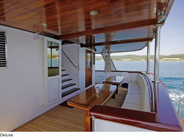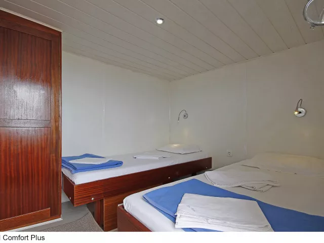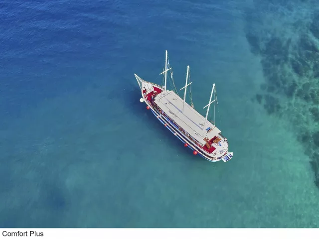 lode kategórie Comfort plus / motorové plachetnice s dreveným alebo oceľovým trupom Lode kategórie Premium – pohodlné a moderne navrhnuté motorové plachetnice a motorové jachty, väčšinou s oceľovým trupom lode kategórie Deluxe / luxusné motorové jachty s oceľovým trupom, krytý salónik na hornej palube a kúpacia plošina vzadu. Za príplatok je možné rezervovať kajutu na palube – iba vopred na vyžiadanie. Pri kategórii Comfort Plus voda zo sprchy odteká do podlahovej vpuste – nejde o samostatný sprchovací kút a nie je oddelený závesom.