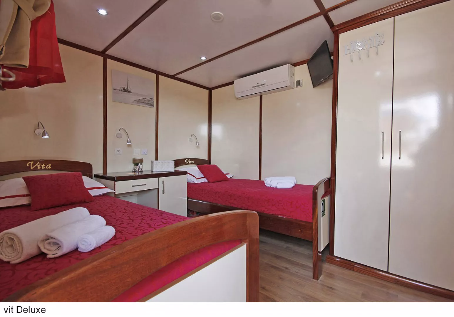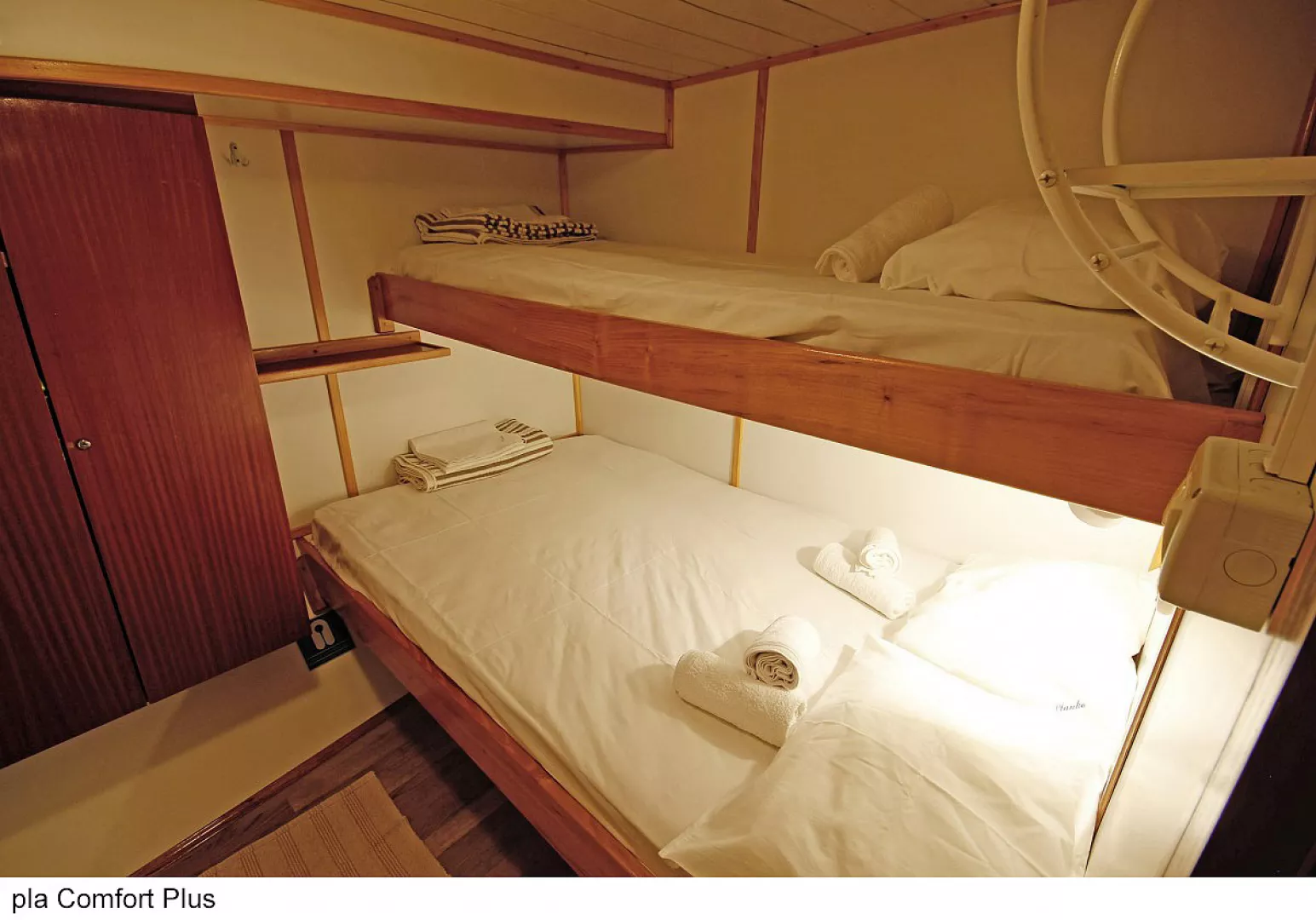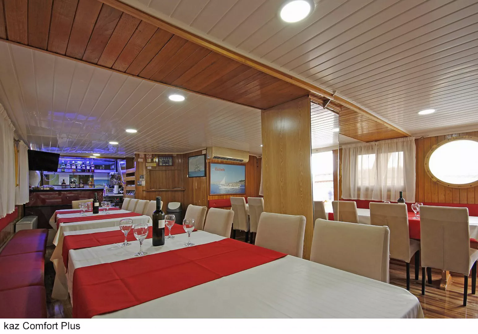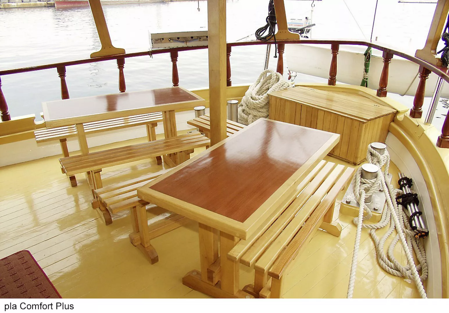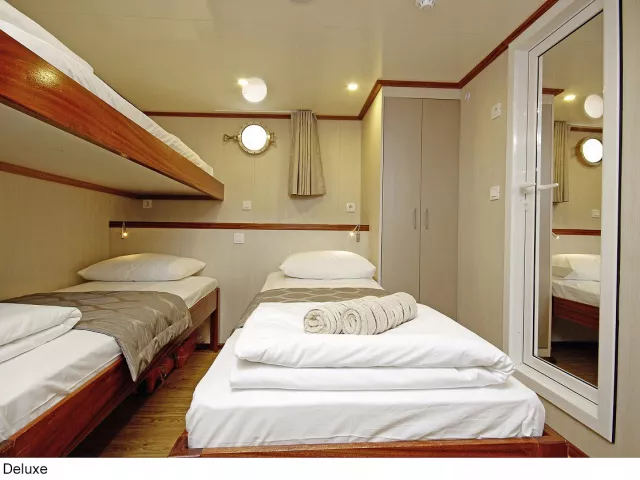 lode kategórie Comfort plus / motorové plachetnice s dreveným alebo oceľovým trupom Lode kategórie Premium – pohodlné a moderne navrhnuté motorové plachetnice a motorové jachty, väčšinou s oceľovým trupom lode kategórie Deluxe / luxusné motorové jachty s oceľovým trupom, krytý salónik na hornej palube a kúpacia plošina vzadu. Za príplatok je možné rezervovať kajutu na palube – iba vopred na vyžiadanie. Pri kategórii Comfort Plus voda zo sprchy odteká do podlahovej vpuste – nejde o samostatný sprchovací kút a nie je oddelený závesom.