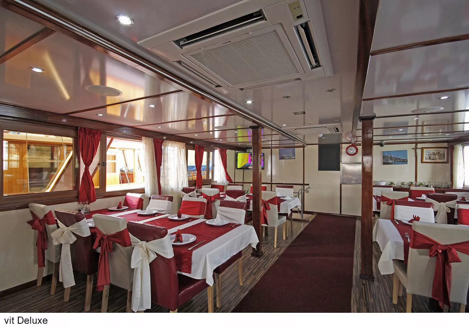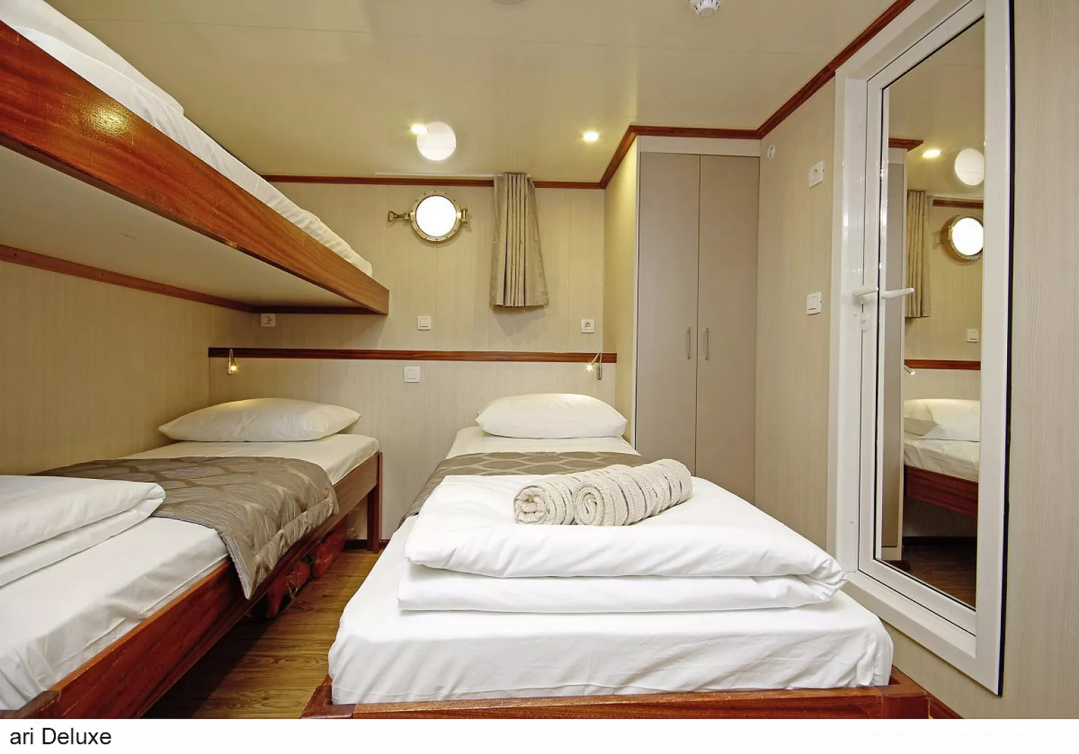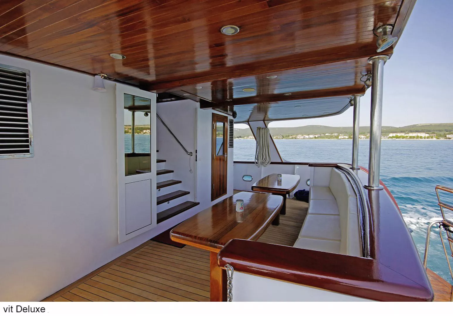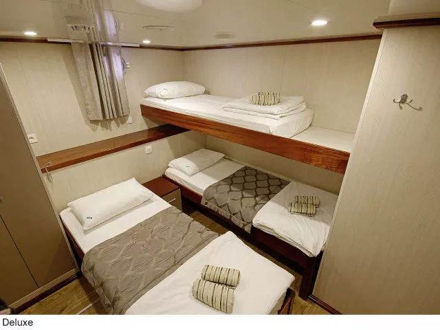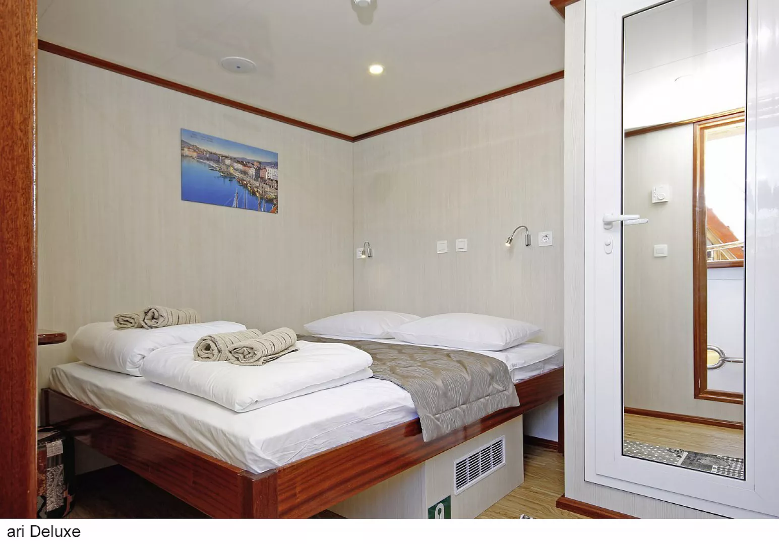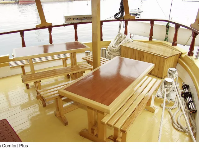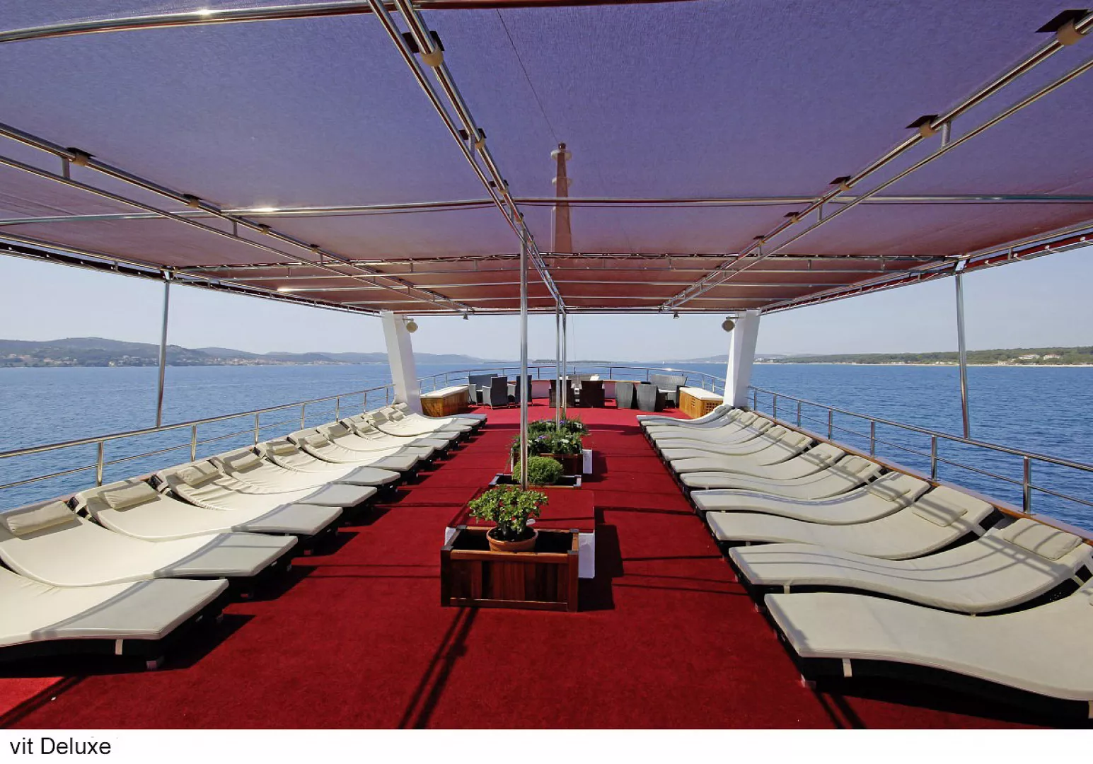 lode kategórie Comfort plus / motorové plachetnice s dreveným alebo oceľovým trupom Lode kategórie Premium – pohodlné a moderne navrhnuté motorové plachetnice a motorové jachty, väčšinou s oceľovým trupom lode kategórie Deluxe / luxusné motorové jachty s oceľovým trupom, krytý salónik na hornej palube a kúpacia plošina vzadu. Za príplatok je možné rezervovať kajutu na palube – iba vopred na vyžiadanie. Pri kategórii Comfort Plus voda zo sprchy odteká do podlahovej vpuste – nejde o samostatný sprchovací kút a nie je oddelený závesom.