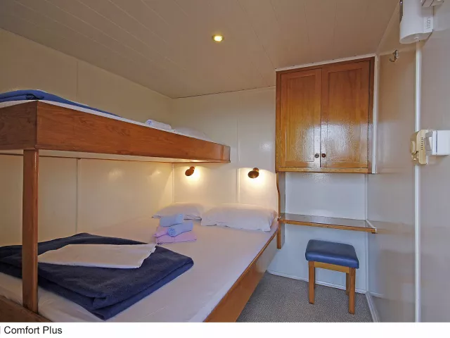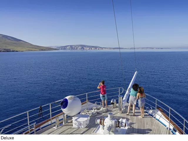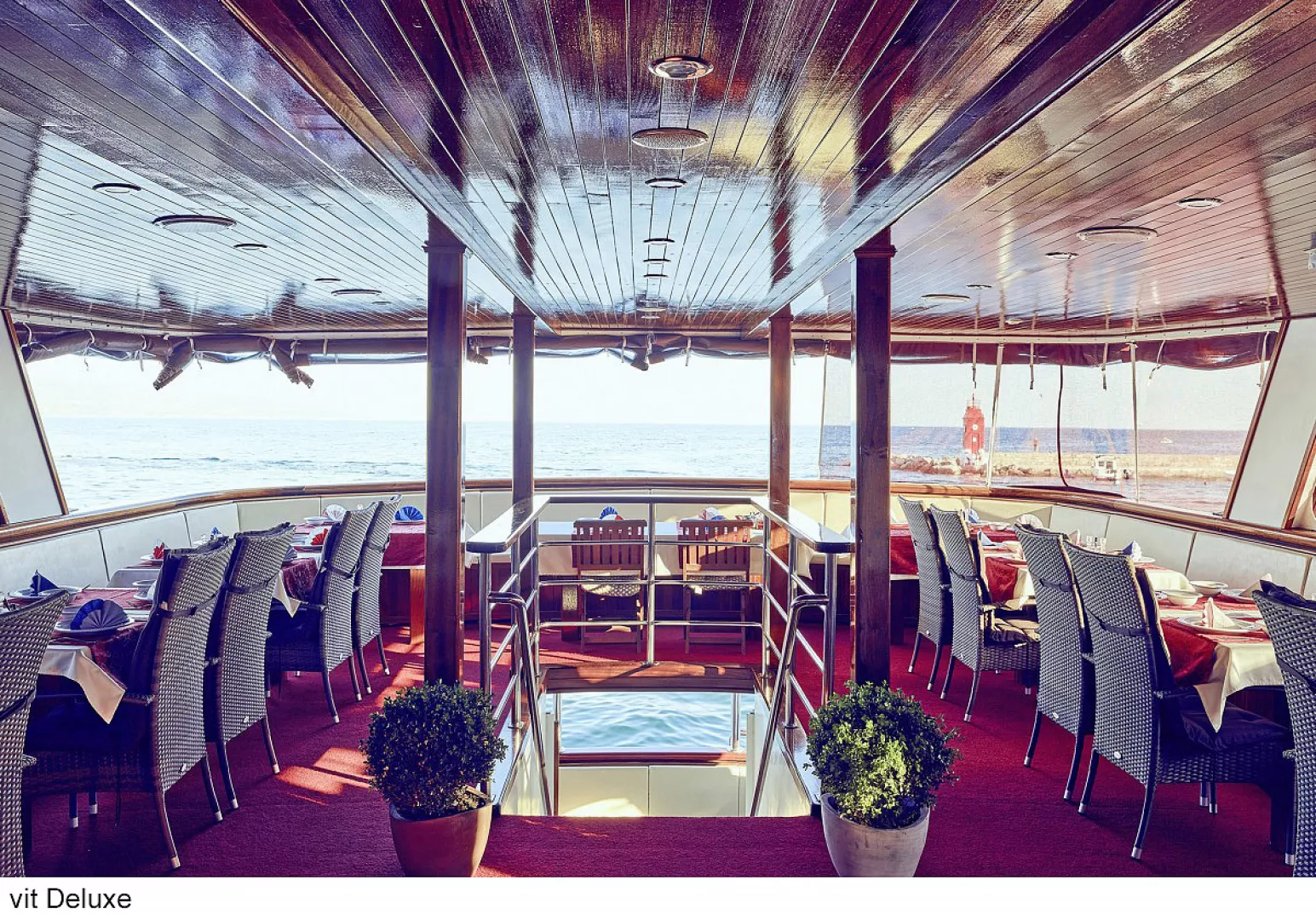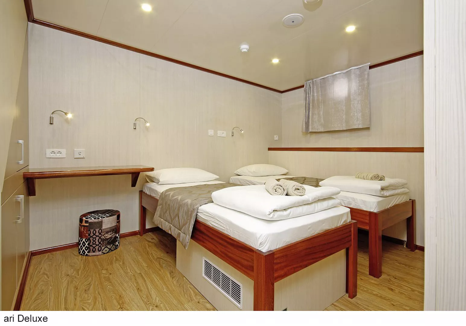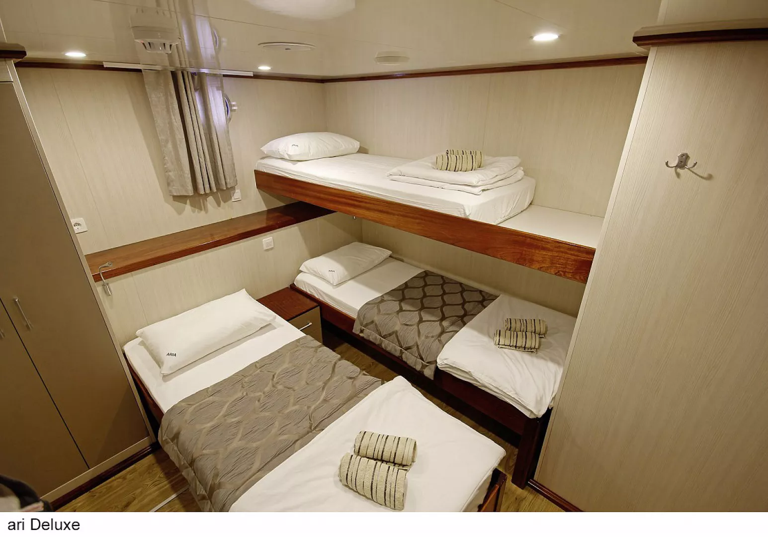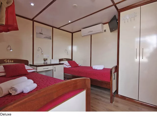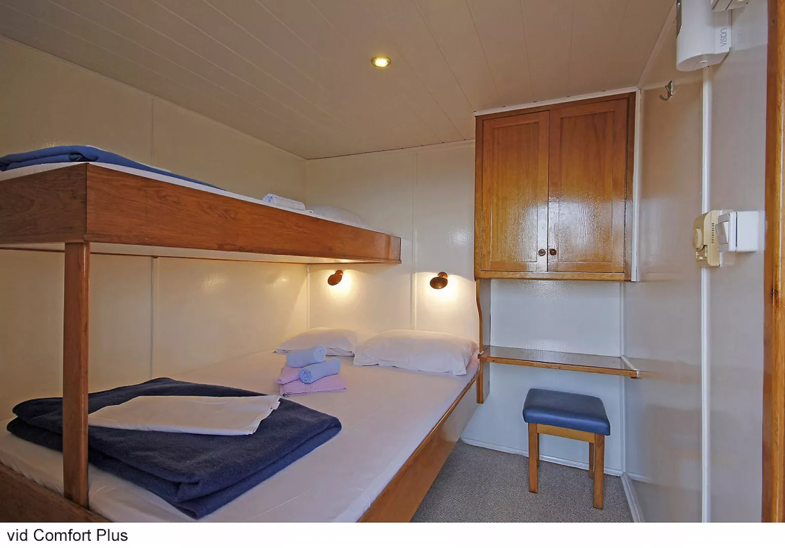 lode kategórie Comfort plus / motorové plachetnice s dreveným alebo oceľovým trupom Lode kategórie Premium – pohodlné a moderne navrhnuté motorové plachetnice a motorové jachty, väčšinou s oceľovým trupom lode kategórie Deluxe / luxusné motorové jachty s oceľovým trupom, krytý salónik na hornej palube a kúpacia plošina vzadu. Za príplatok je možné rezervovať kajutu na palube – iba vopred na vyžiadanie. Pri kategórii Comfort Plus voda zo sprchy odteká do podlahovej vpuste – nejde o samostatný sprchovací kút a nie je oddelený závesom.